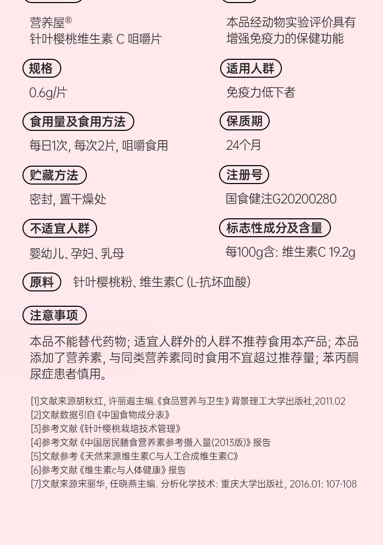 包邮-敖东营养屋针叶樱桃维C咀嚼片高含量巴西天然VC增强免疫力0.6g/粒*62粒/盒