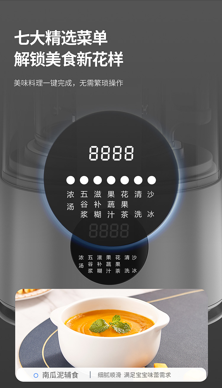 艾贝丽Abereve柔音破壁机家用豆浆机加热全自动榨汁机搅拌机辅食机早餐机ABL-JY712