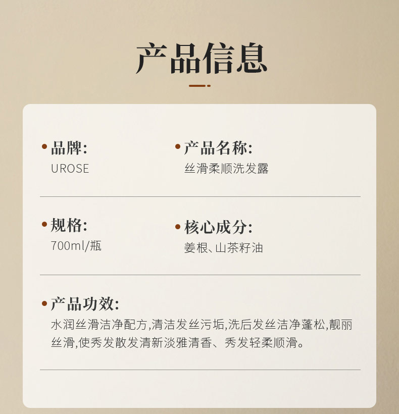 【三瓶装】UROSE丝滑柔顺洗发露700ml【新疆西藏内蒙不发货】