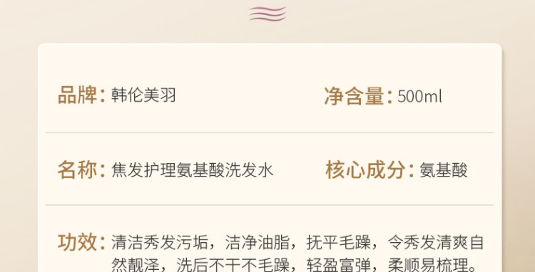 【两瓶装】韩伦美羽-焦发护理氨基酸洗发水500g【新疆西藏内蒙不发货】