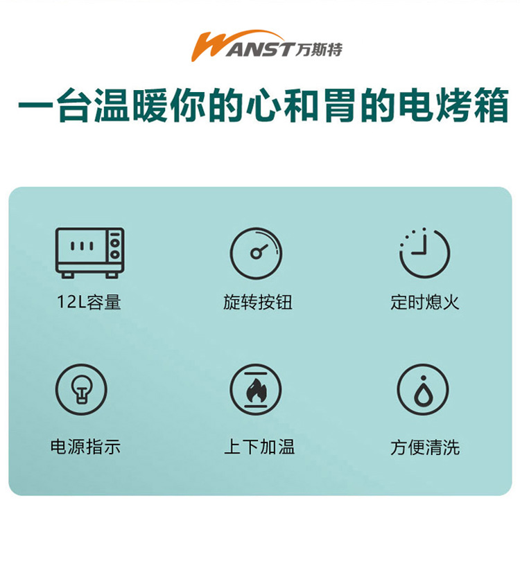 万斯特/WANST 电烤箱多功能烤箱12L家用烘焙电烤箱蛋糕迷你小烤箱 FFF-1201