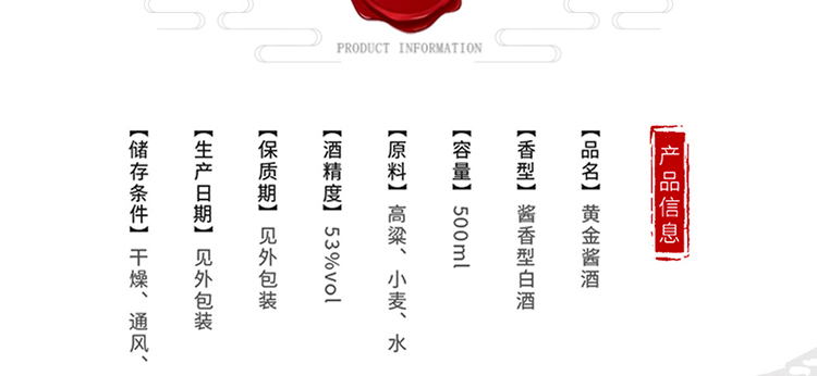 黄金酱酒 尊酱 53%vol 酱香型白酒 500ml/瓶 单瓶装 新疆、西藏偏远地区不包邮