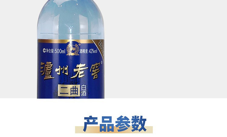 泸州老窖 二曲白酒 蓝瓶 42度 500ml*12瓶 整箱装 新疆、西藏偏远地区不包邮