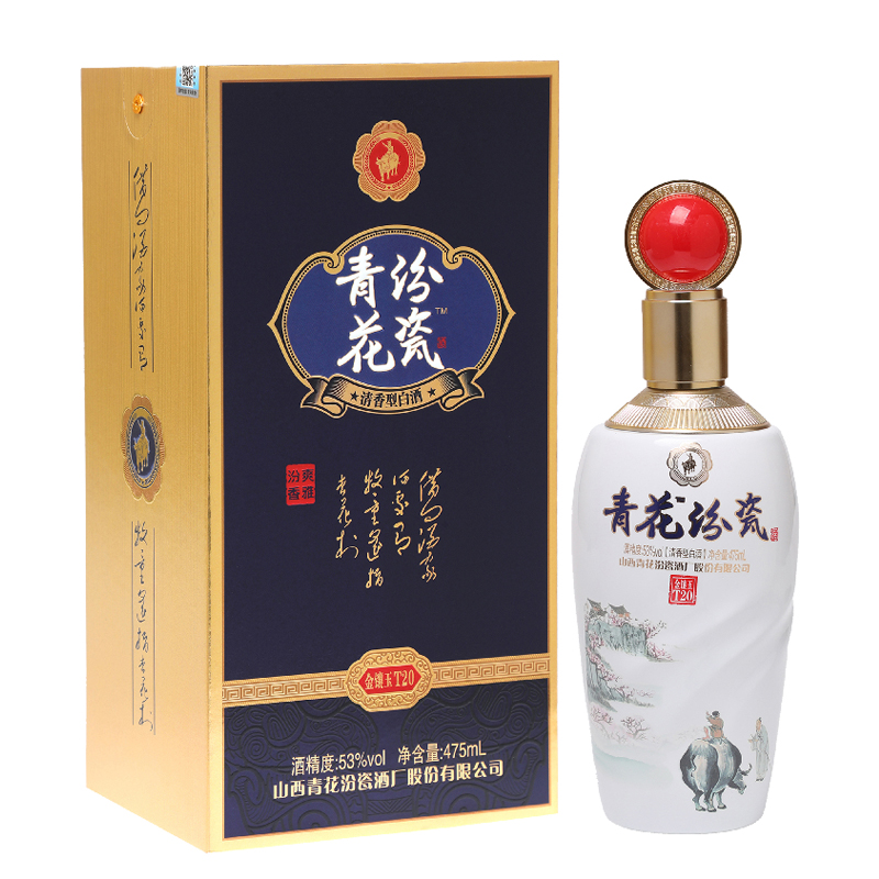 包邮-青花汾瓷 金镶玉T20 清香型白酒 52度 整箱装(规格:500ml/瓶*6瓶)
