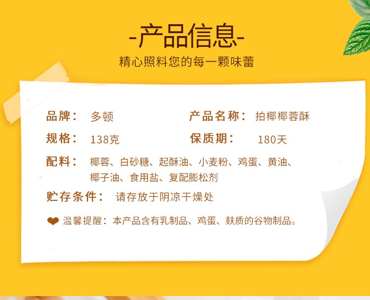 包邮 J-多顿拍椰椰蓉酥138克*2盒