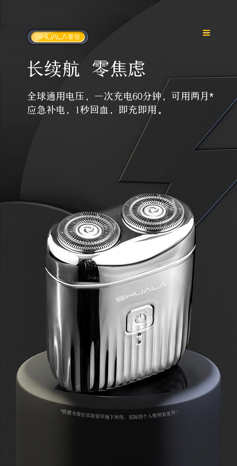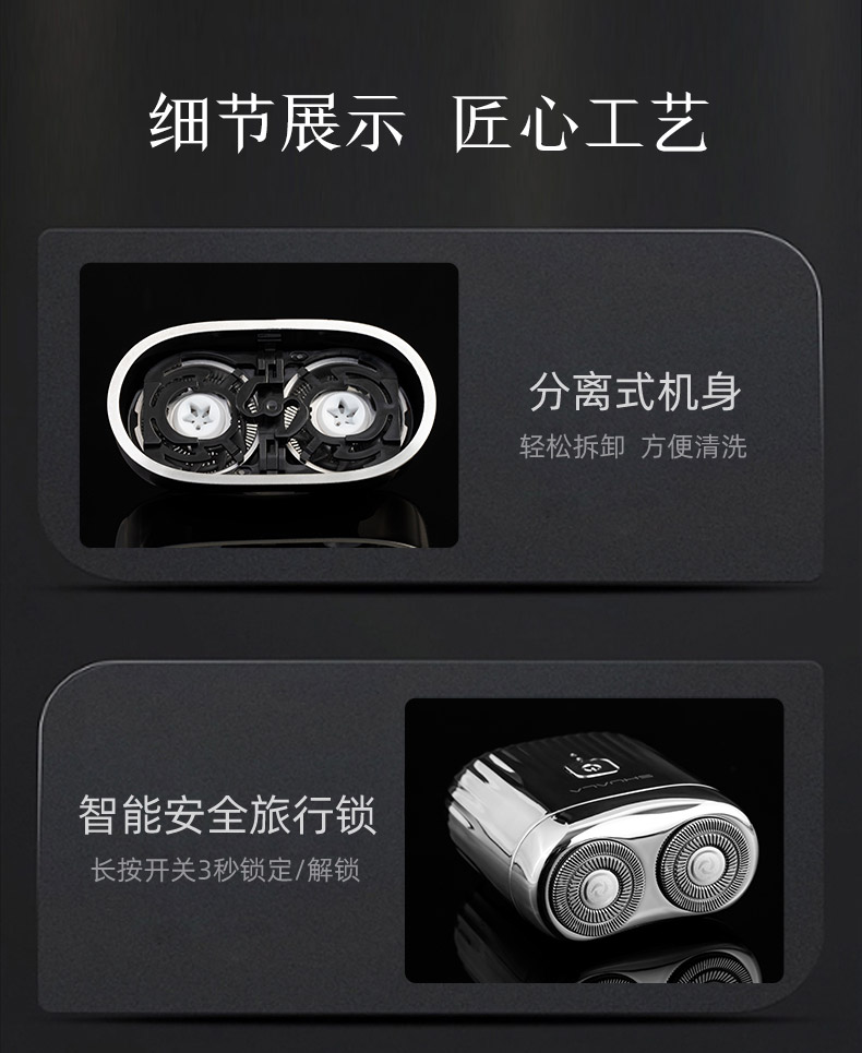 耍拉电动剃须刀男士刮胡须刀迷你须刨全身水洗便携送男友生日节日礼物 双刀头S2