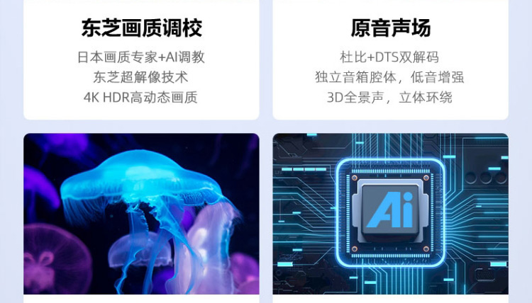TOSHIBA 东芝65C240F 65英寸无边框超薄悬浮全面4K屏 安卓9.0系统 16G内存 超薄LED液晶电视 送货上门