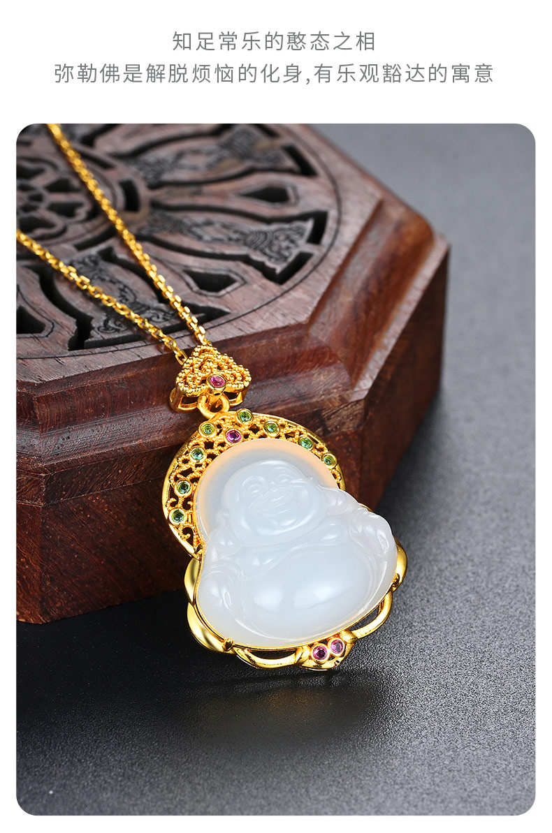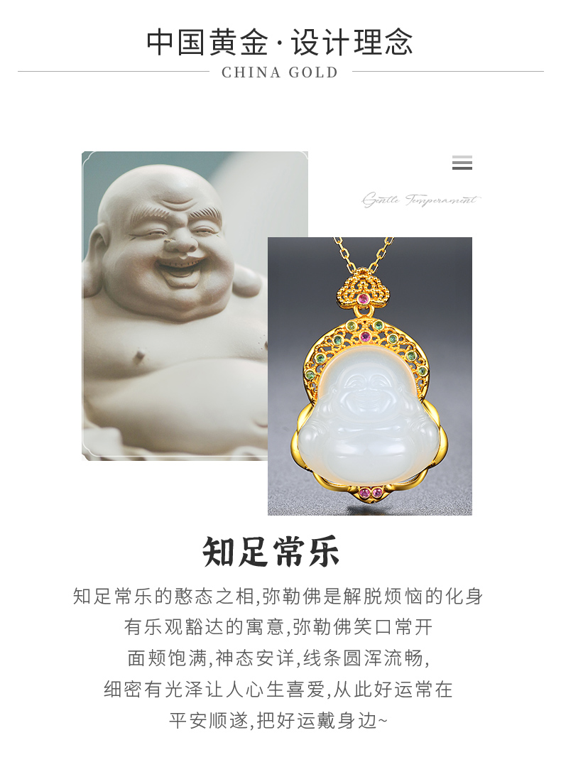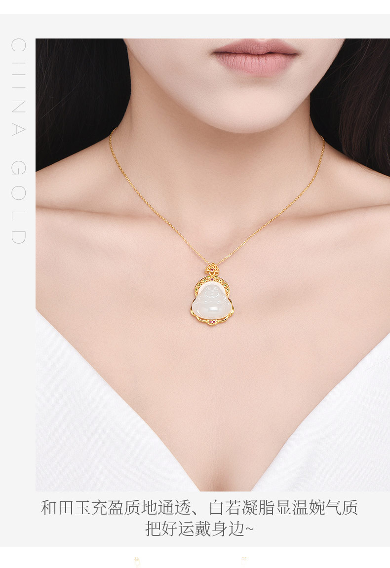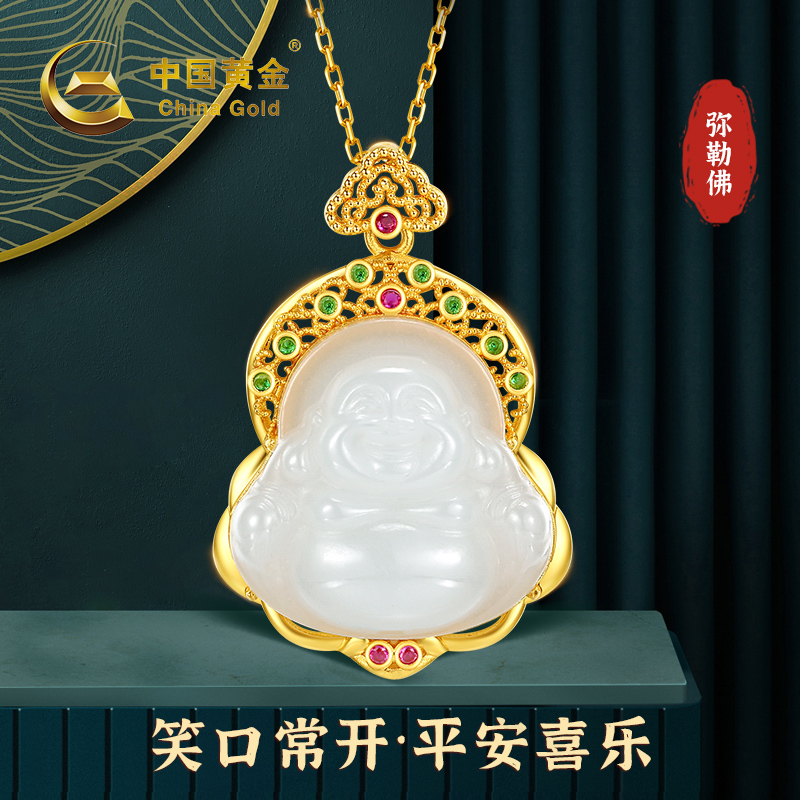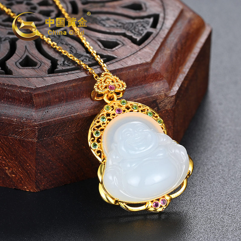 包邮-中国黄金18K金镶和田玉锆石弥勒佛吊坠ZGHJ221290 支持线下验货【新疆 西藏不发货】