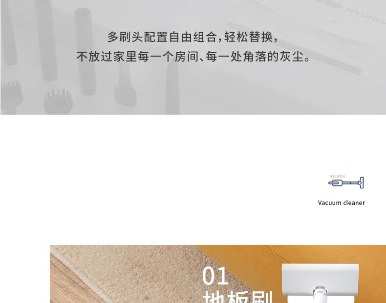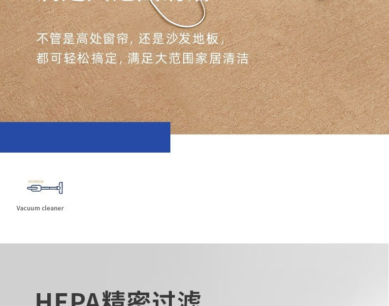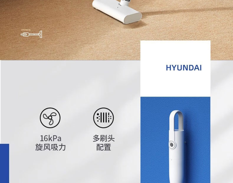 韩国现代 手持吸尘器 大吸力低噪音手持吸尘器 深度过滤清洁 多刷头替换 型号:JK-AC300A