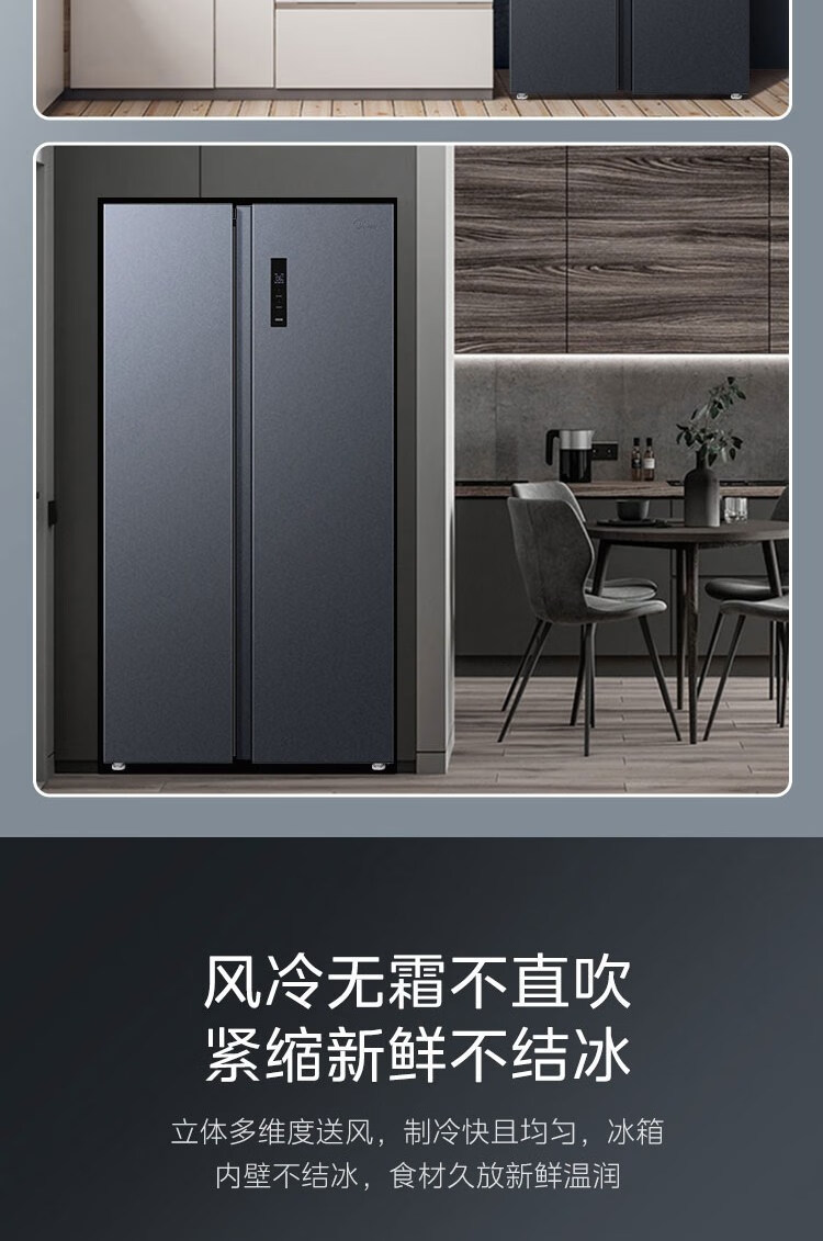 美的Midea 对开门双开门532升双变频恒温 风冷省电静音 家用电冰箱BCD-532WKPM【ZG】墨兰灰