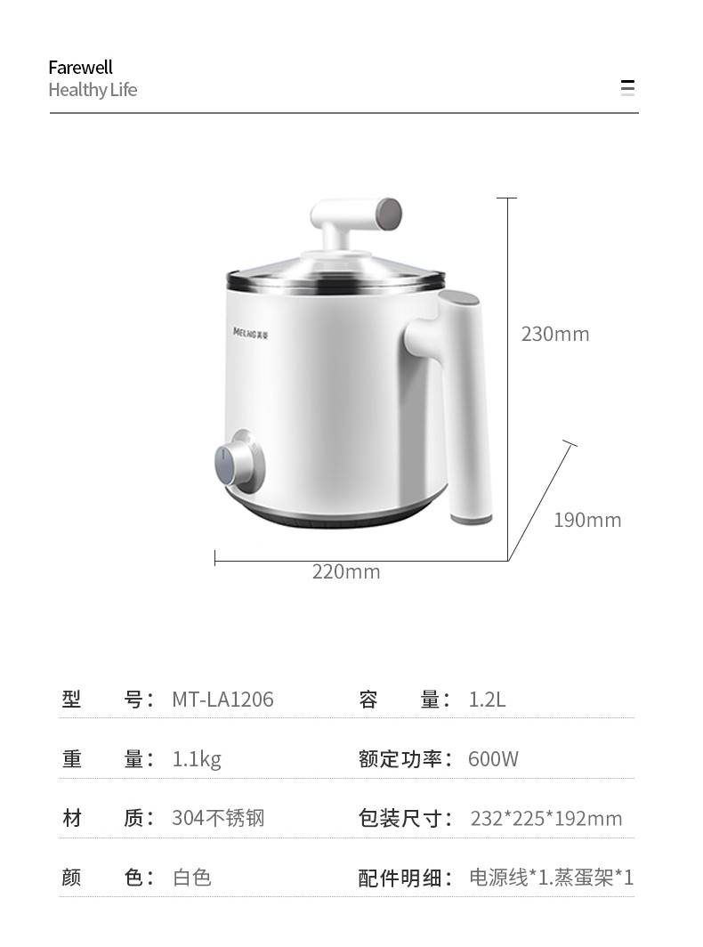 美菱(MEILING)电煮锅多功能家用学生宿舍小型电热火锅一体煮面炒电锅 MT-LA1206