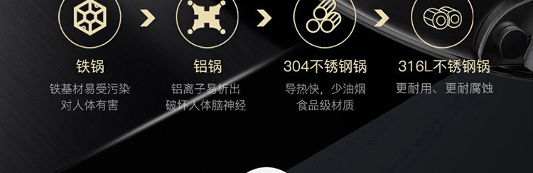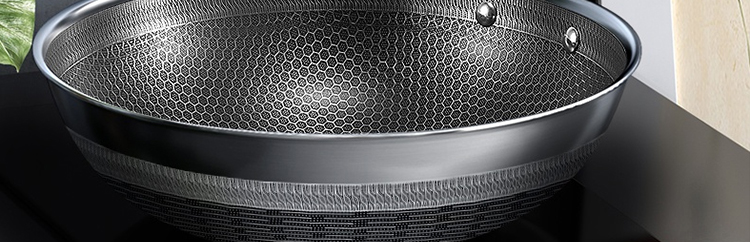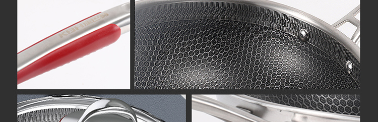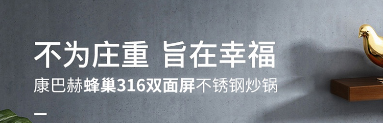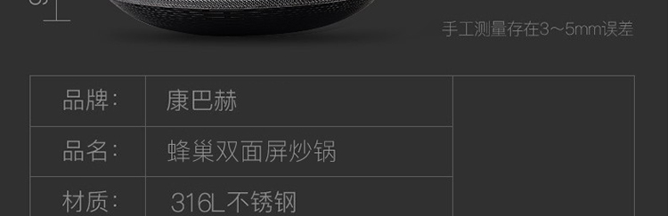 康巴赫 蜂巢316L不锈钢双面屏不易粘炒锅 32cm少油烟炒菜锅CDX32A1