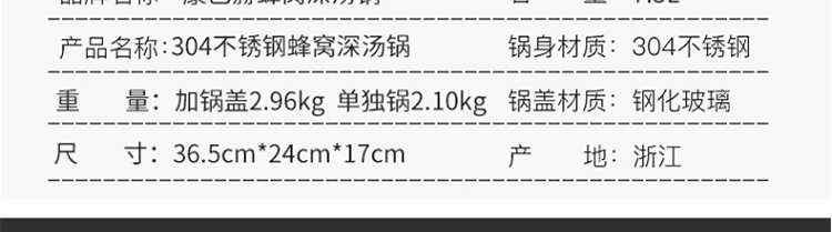 康巴赫高汤锅304不锈钢汤锅蜂巢不粘深汤锅24cm电磁炉通用 TFS24A1
