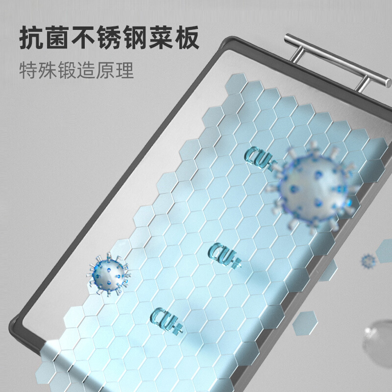 康巴赫 精美礼盒装 砧板抗菌不锈钢双面菜板防霉切菜板饺子板擀面板 KQY-S38K