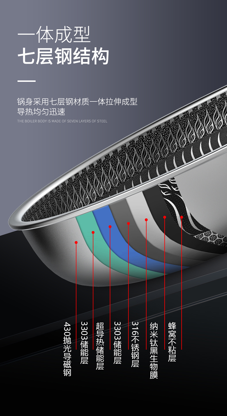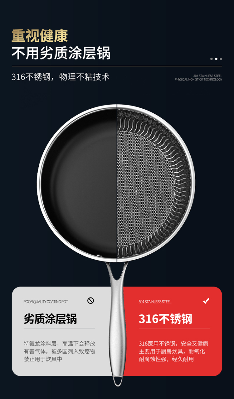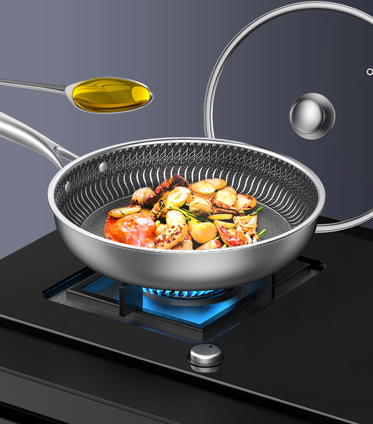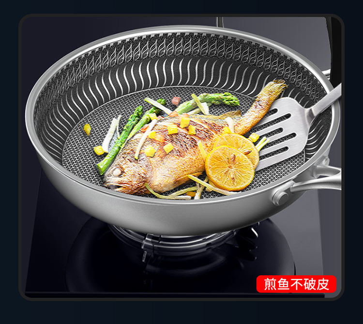 德沃仕 蜂窝晶纹复合钢全面屏316L不锈钢防粘煎锅28cm 炒锅平底锅