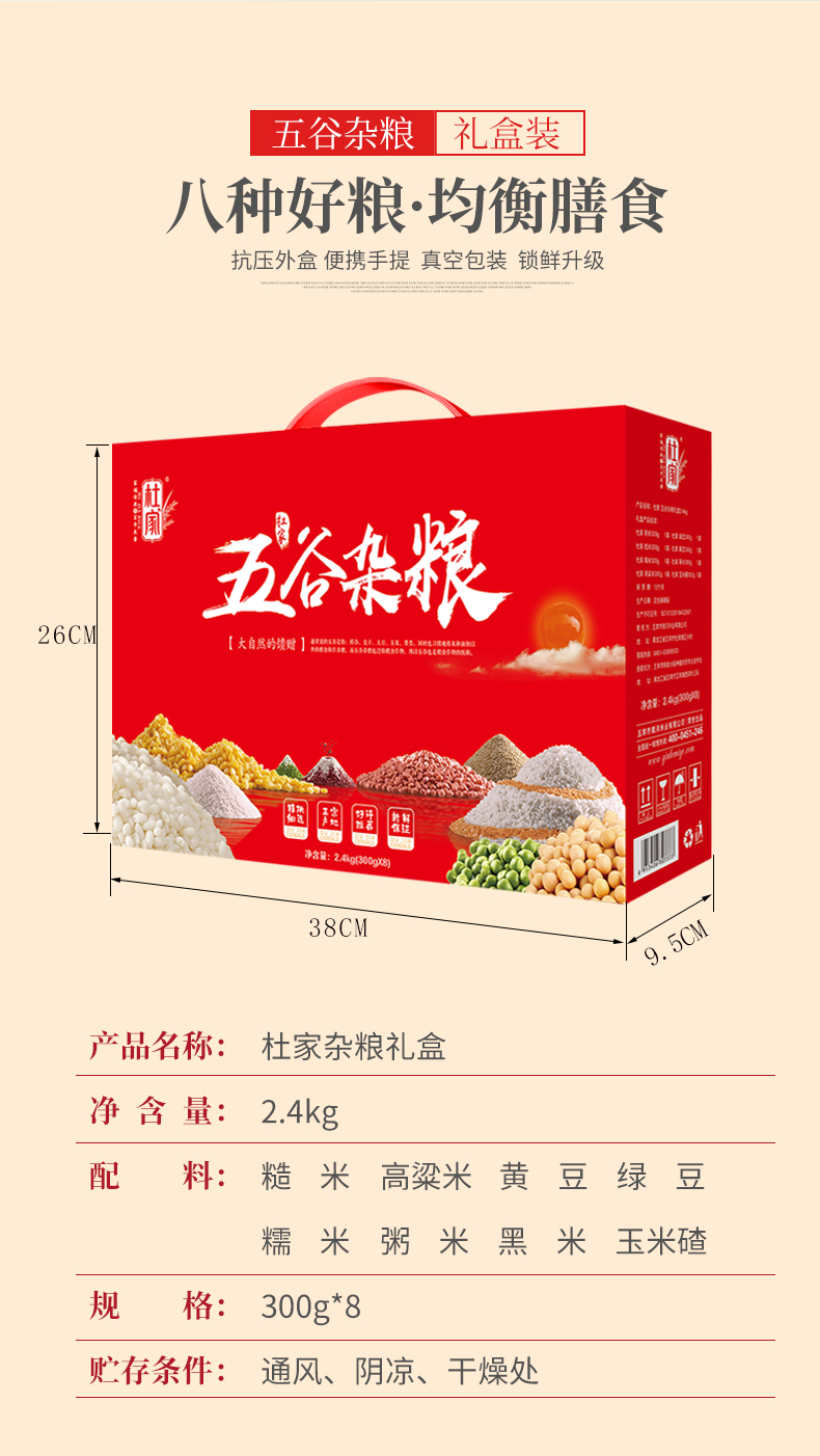 杜家五谷杂粮礼盒 充氮气保鲜 300G*8袋 来自东北五常杜家镇 2024.12.4生产