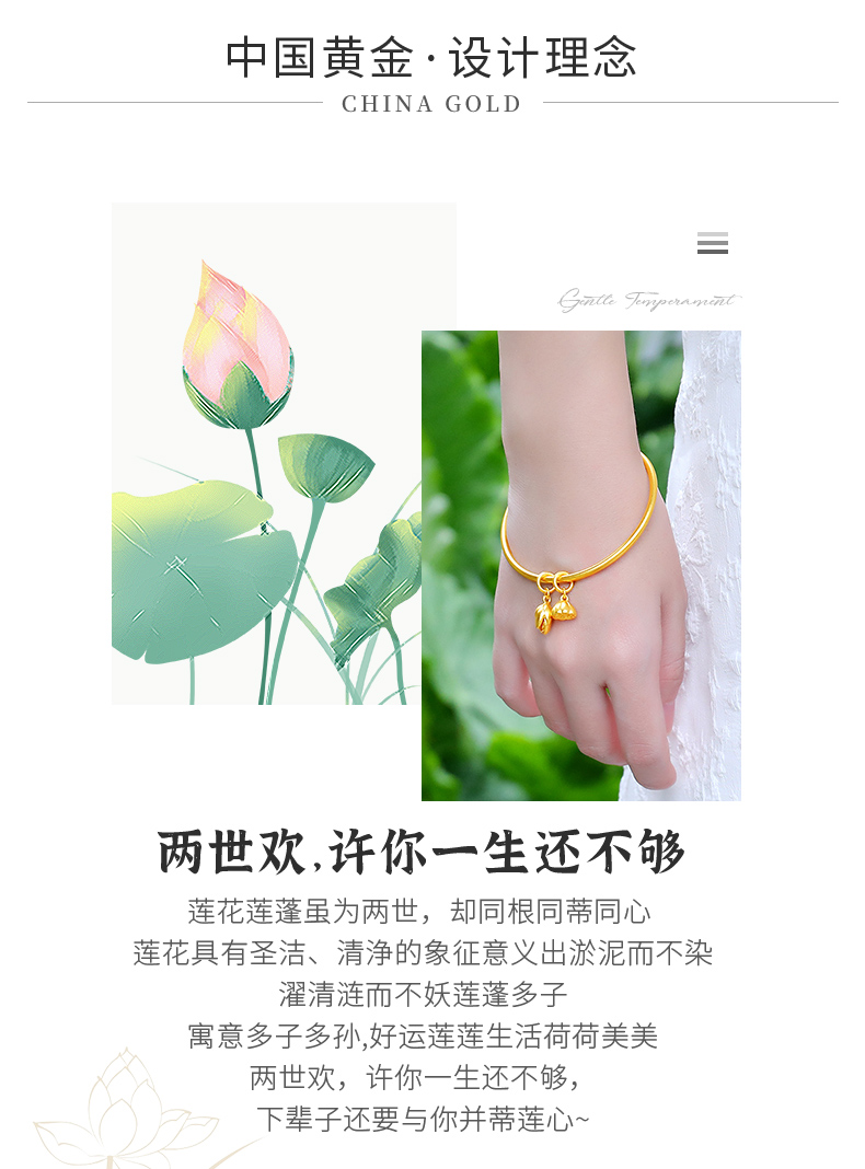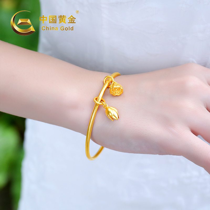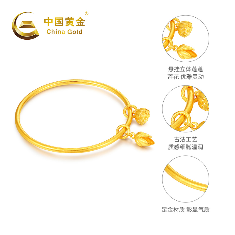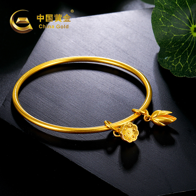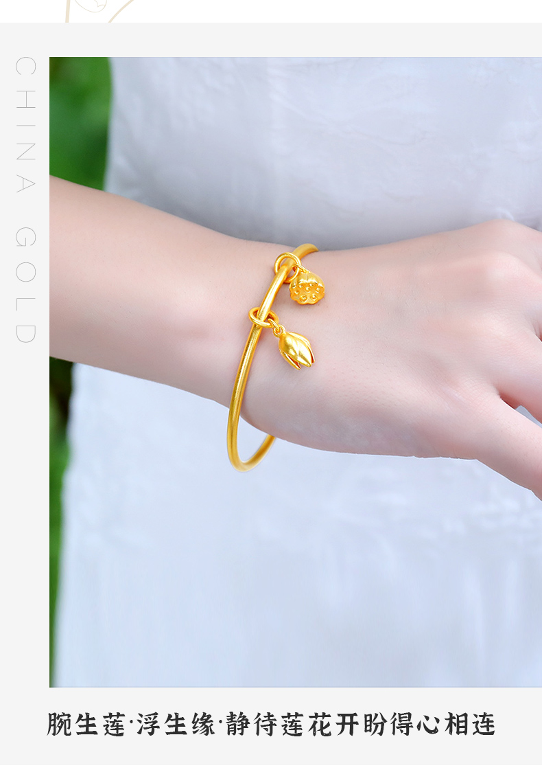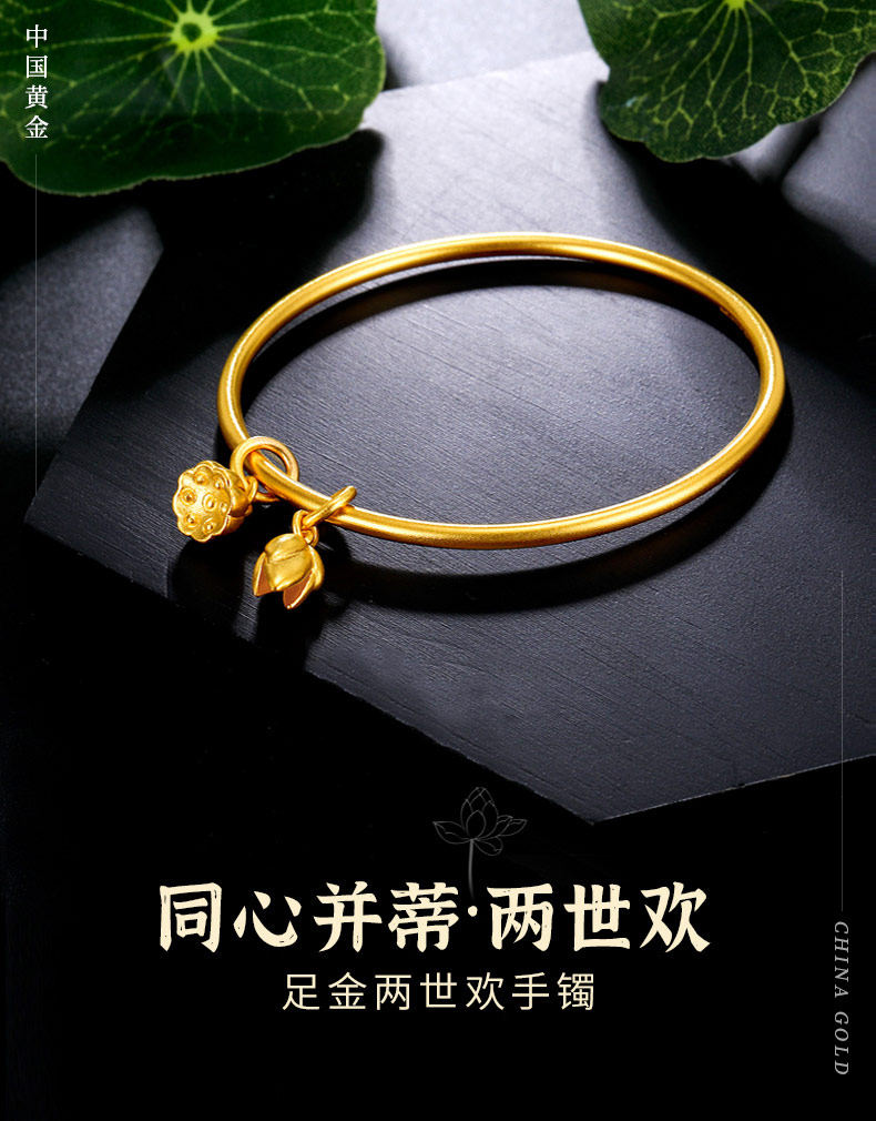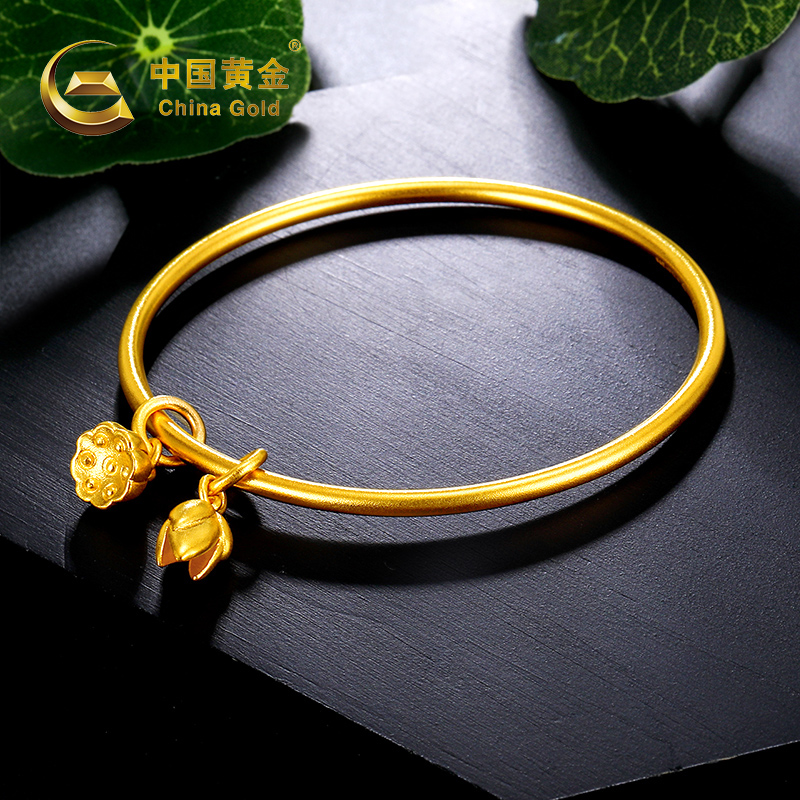 包邮-中国黄金足金两世欢手镯ZGHJA081610-1【圈口58#】 支持线下验货【新疆 西藏不发货】