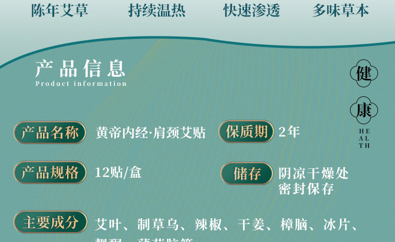 1、肩颈艾贴 ;2、腰椎艾贴;3、膝盖艾贴