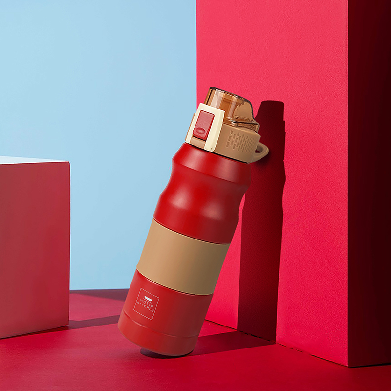 美国康宁/WORLD KITCHEN 304不锈钢保温杯保冷杯 大容量弹跳杯户外家用防滑杯底500ml WK-TTB500ML/KZ/RD