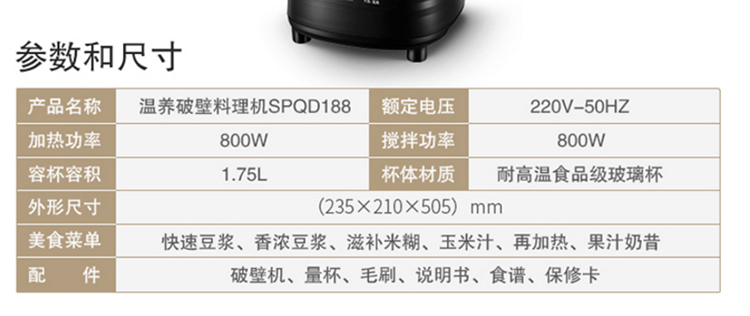 苏泊尔破壁机料理机SPQD188 高速破壁 温热养生
