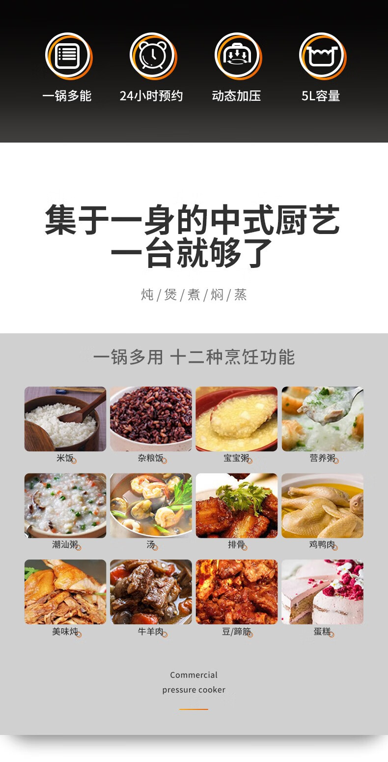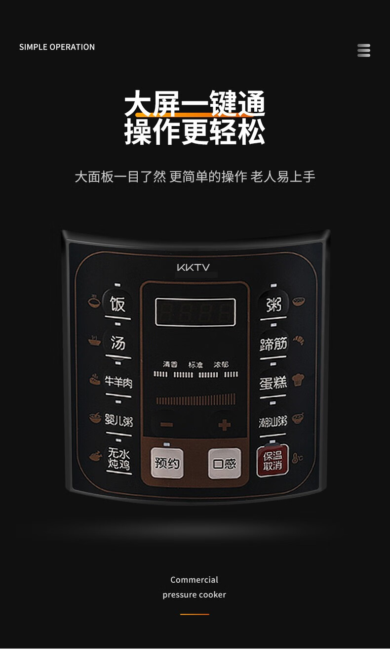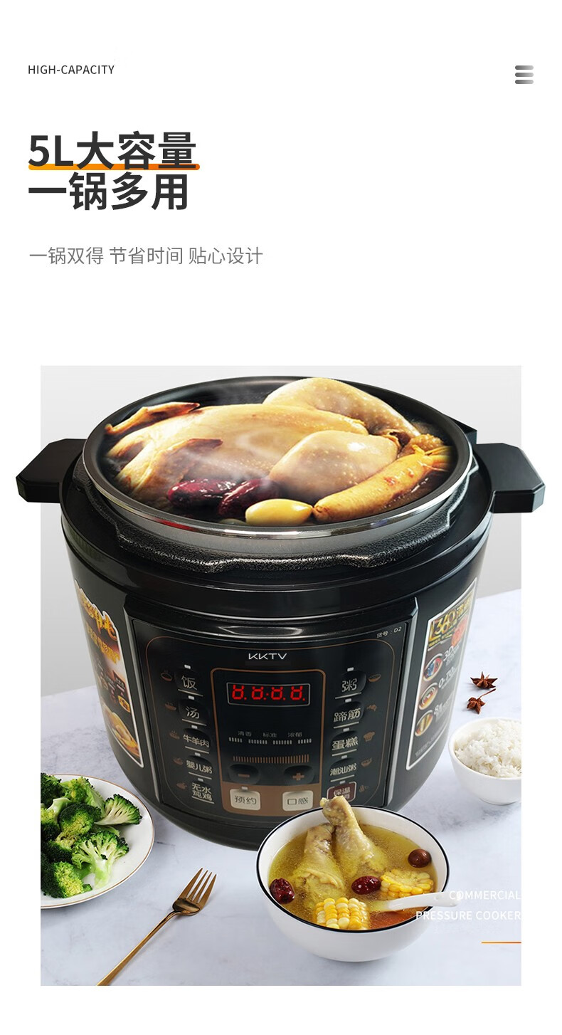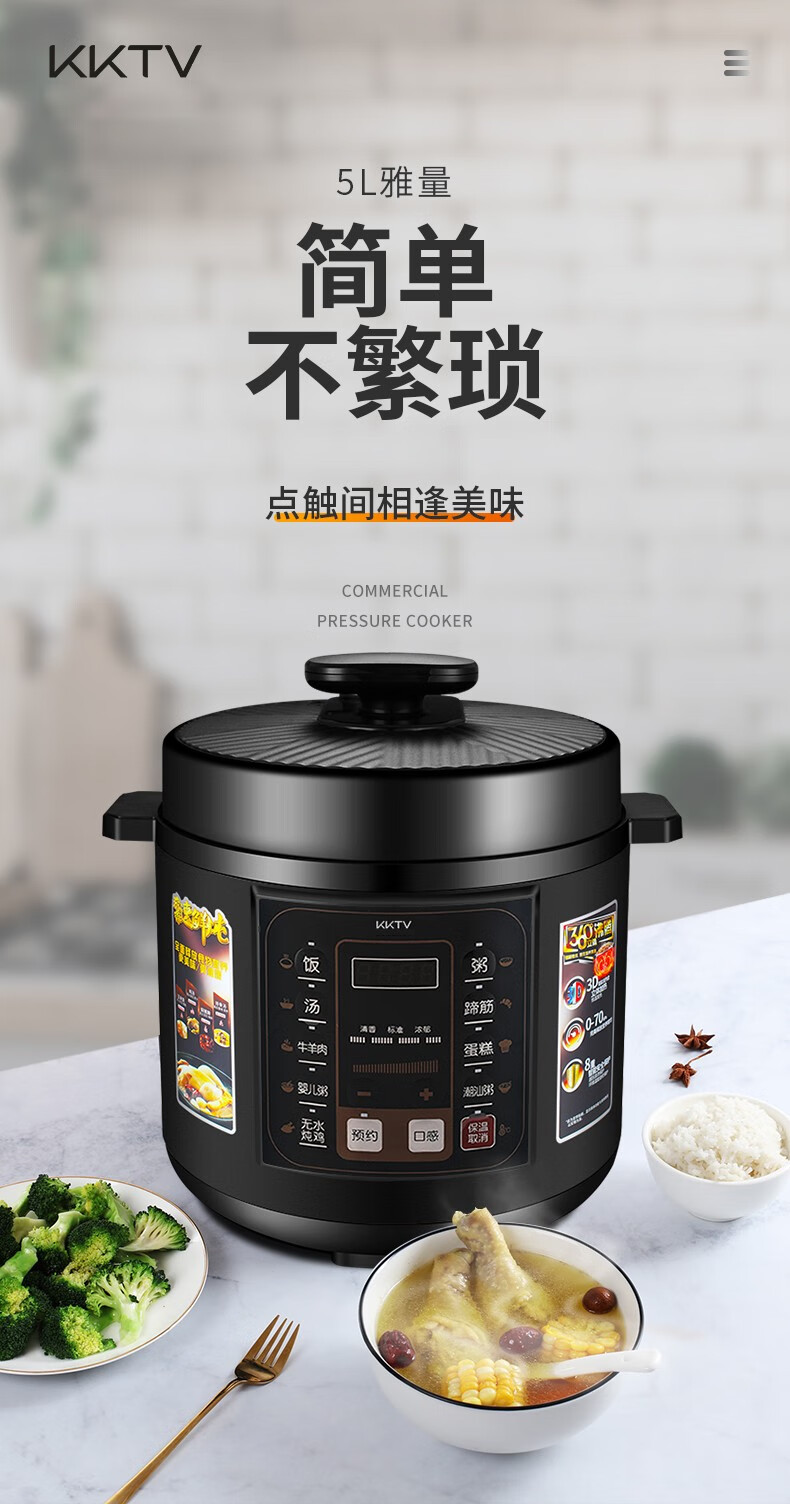 KKTV 电压力锅智能多功能压力锅 一锅单胆 开盖收汁 5L大容量高压锅 智能预约 口感多选电压力锅