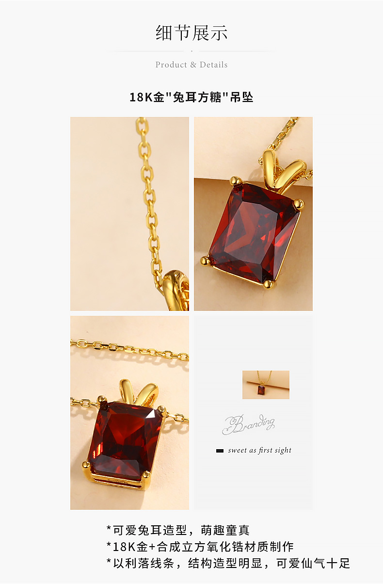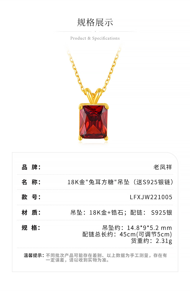 【每证一品】老凤祥18K金"兔耳方糖"吊坠 送S925银链