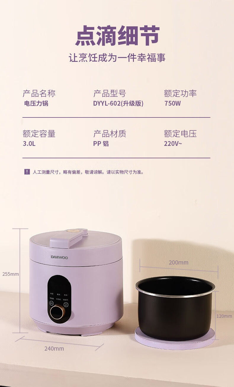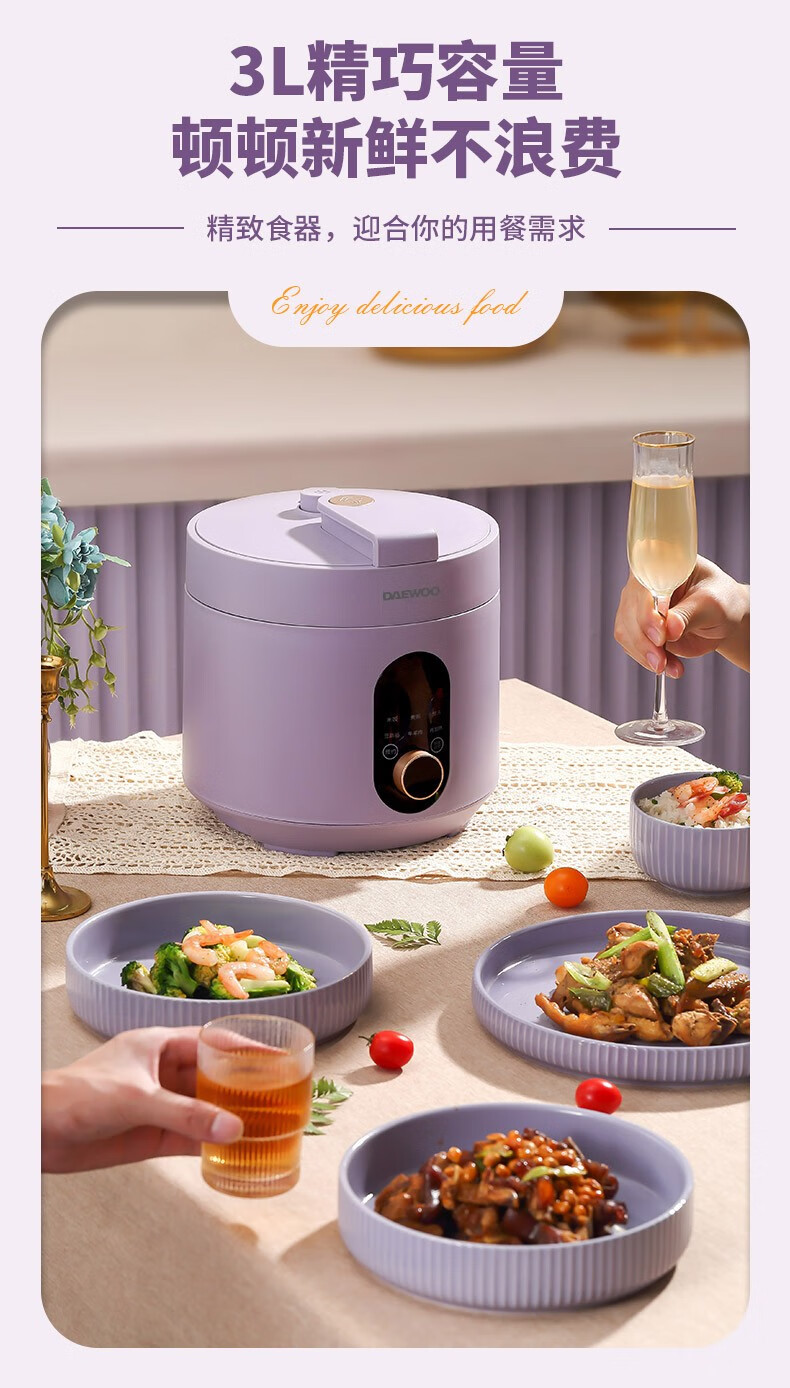 大宇/DAEWOO 家用智能小型饭煲 3L煮饭煲汤电压力锅DYYL-602升级版
