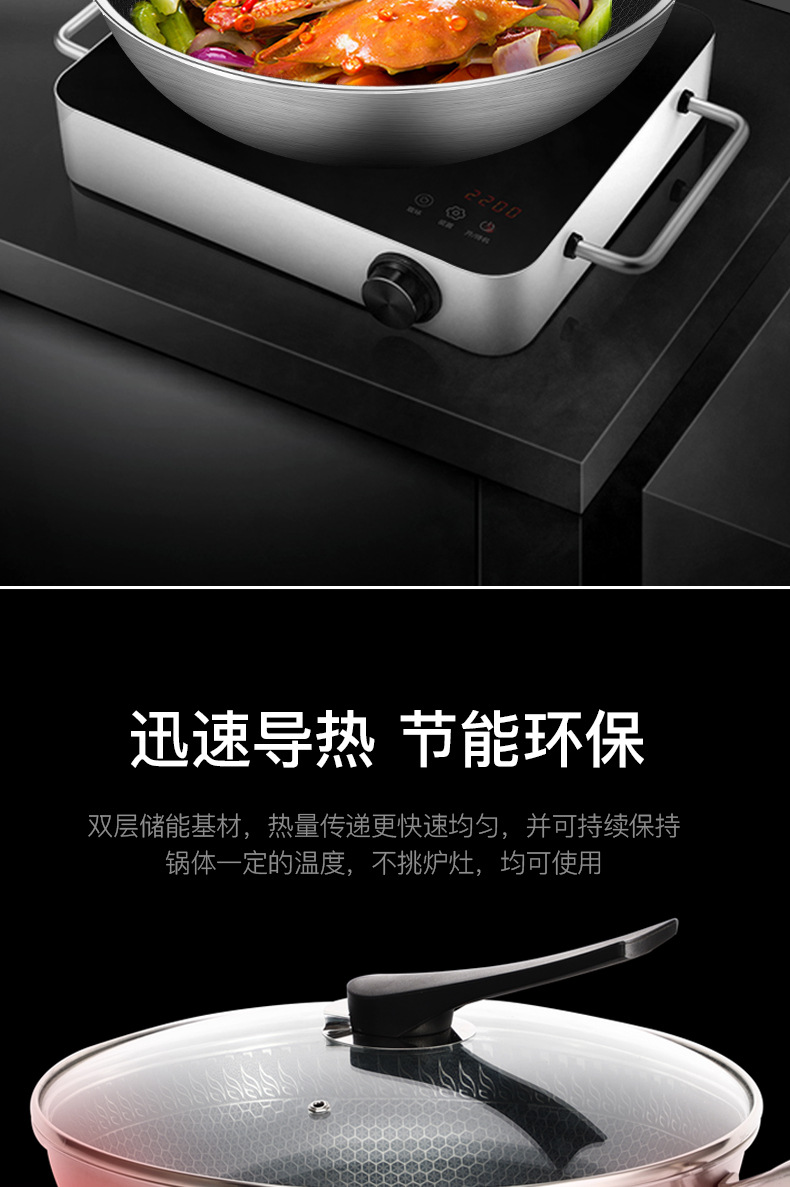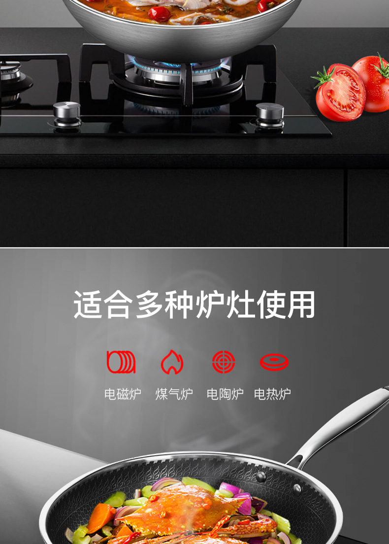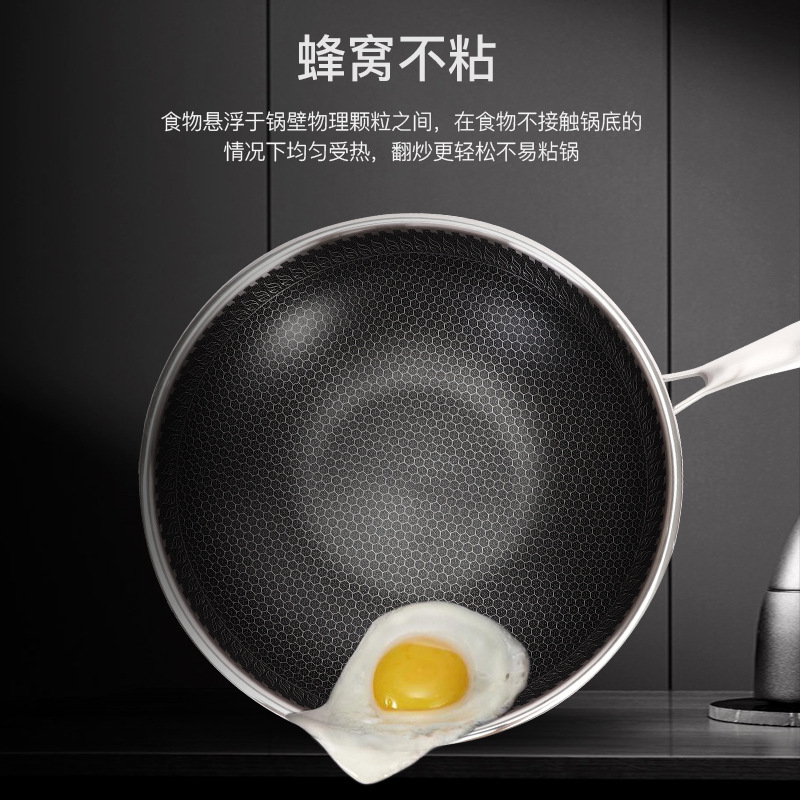 厨至尊304食品级不锈钢32cm三层加厚全屏不易粘炒锅