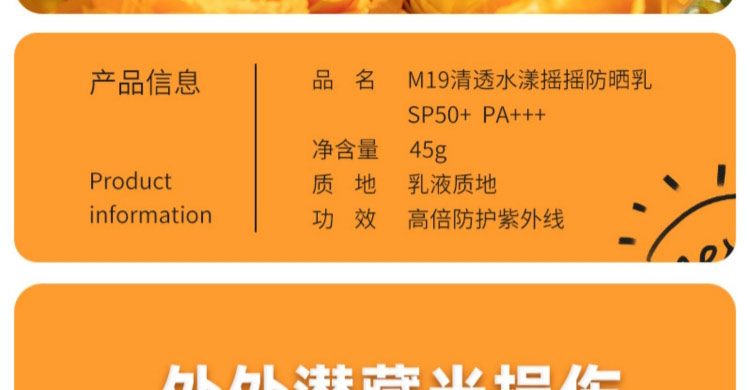 M19轻透水漾摇摇防晒乳45g/瓶【港澳台/新疆/西藏地区不发货】