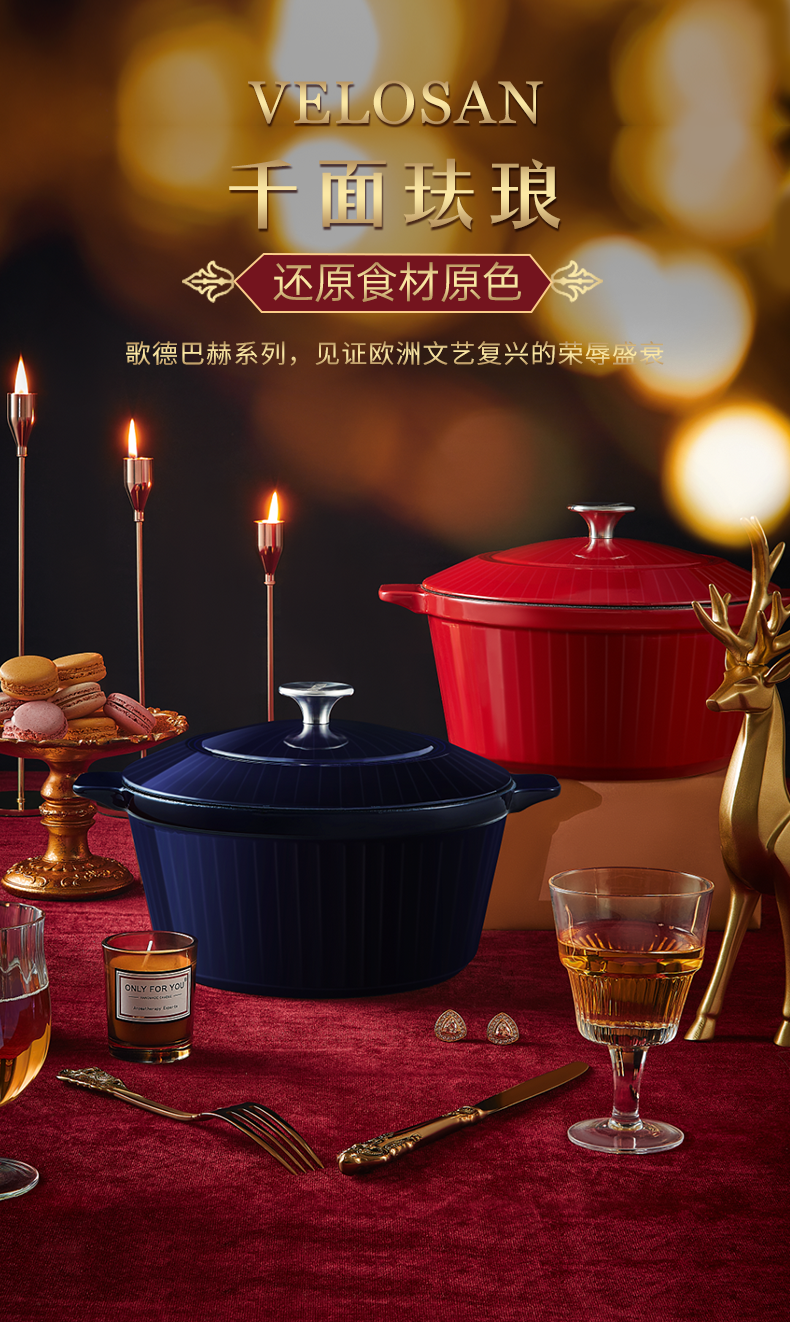 VELOSAN温仑山 汤锅德国珐琅锅铸铁奶锅炖锅电磁炉煮面平底蒸锅厨房锅具 赫本红【24cm】