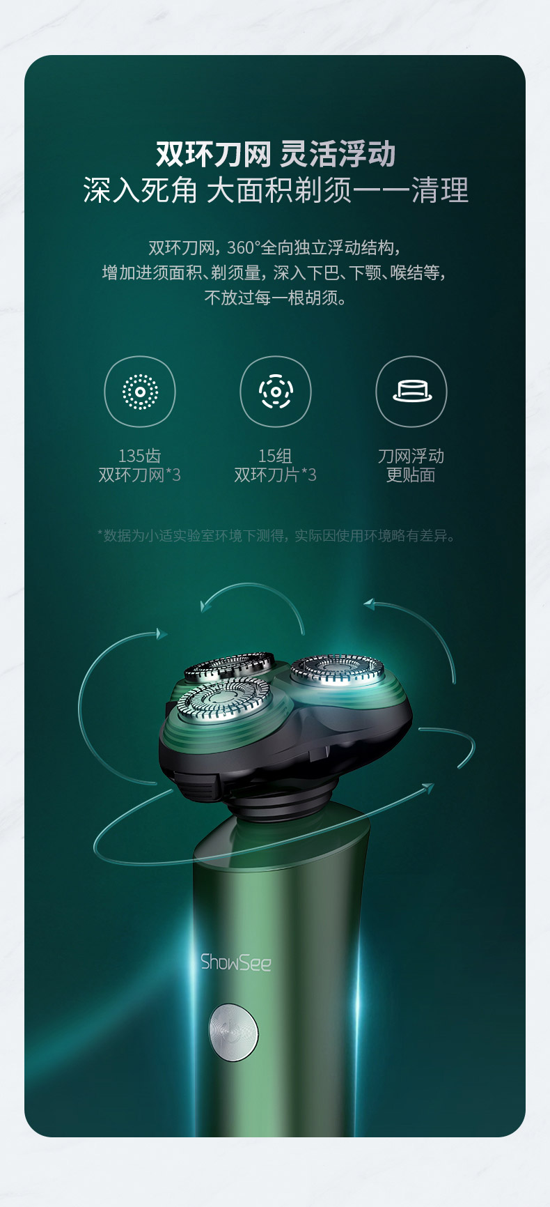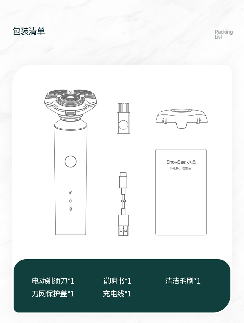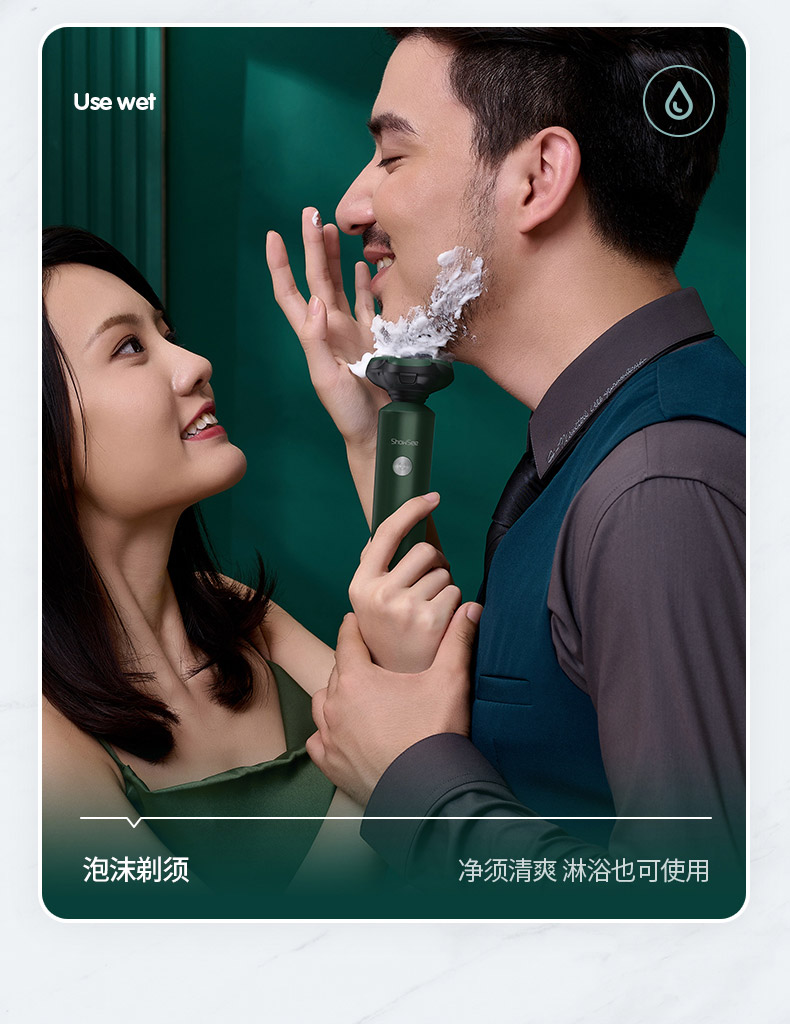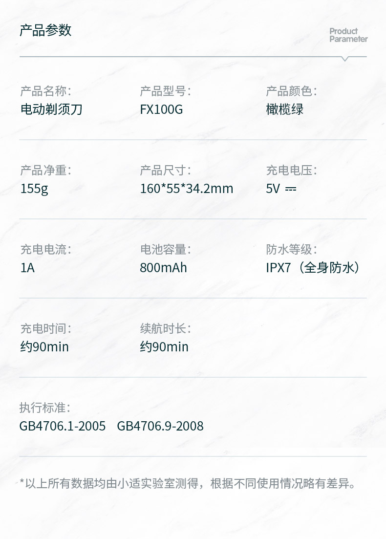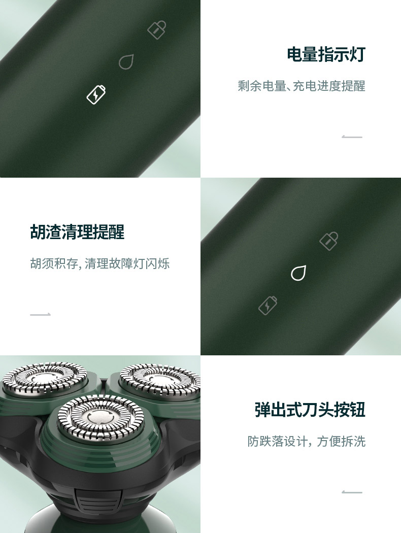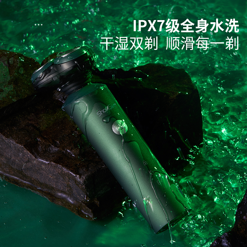 包邮-小适FX100G剃须刀3D浮动刀头德国进口钢材立式设计橄榄绿全身水洗三刀一体便携充电式刮胡须刀