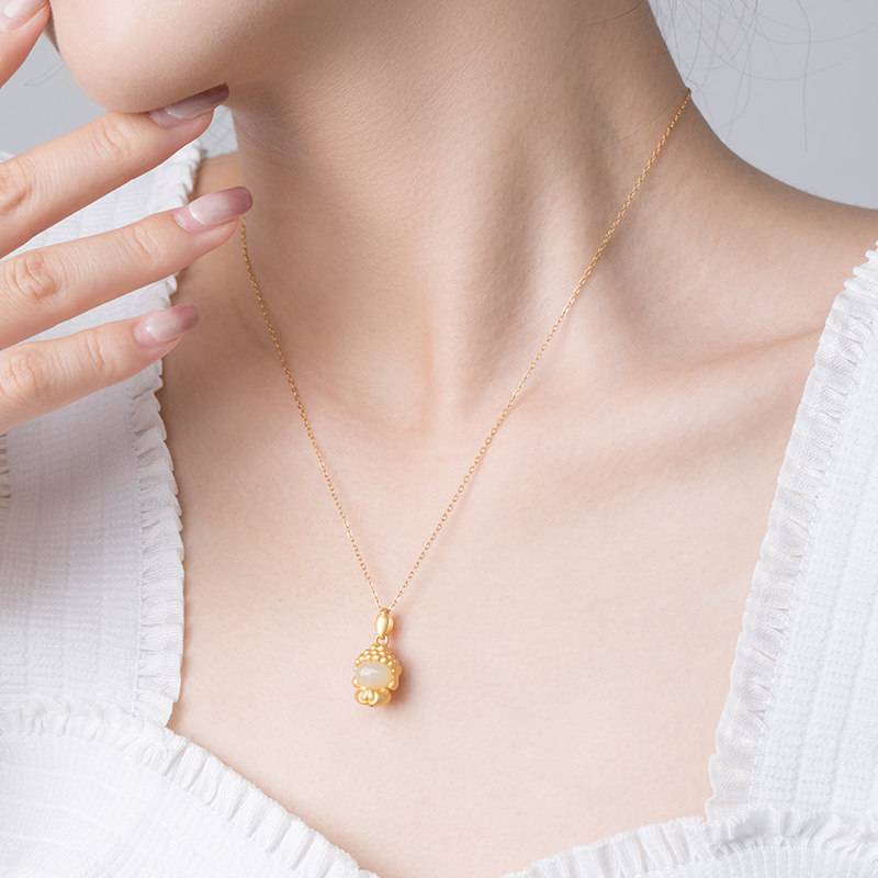 中国黄金福运连连石英岩质玉吊坠《证书+吊牌+质保单+礼盒+手提袋》