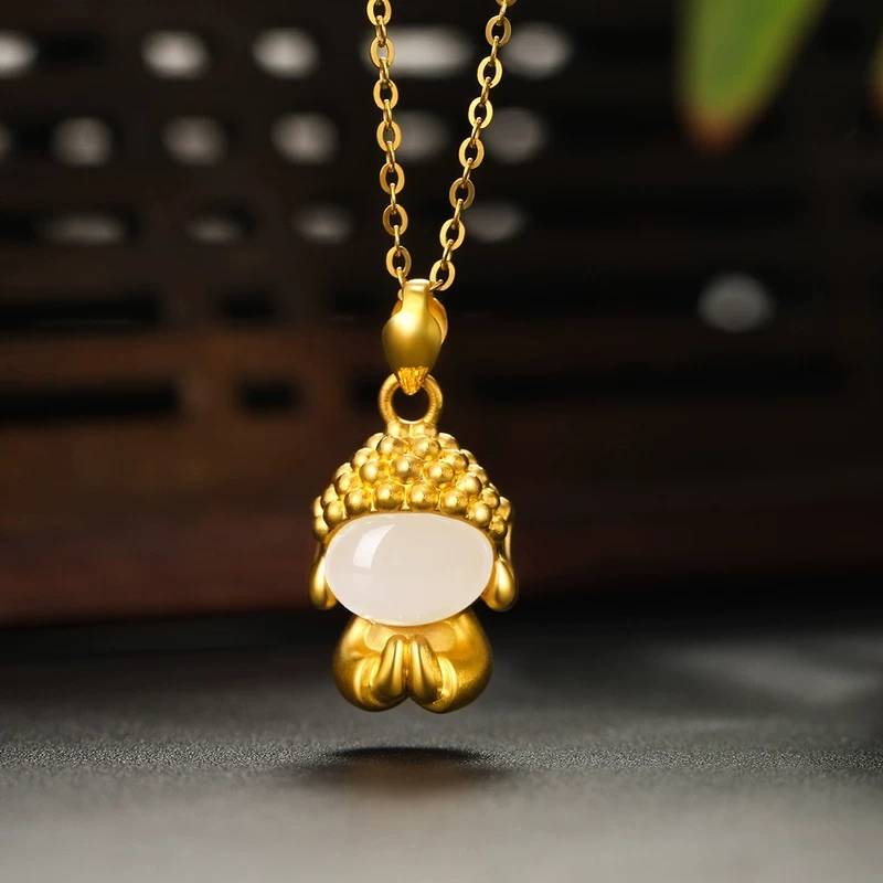香港周六福 银镶玉-无相佛吊坠(附赠钛金项链)