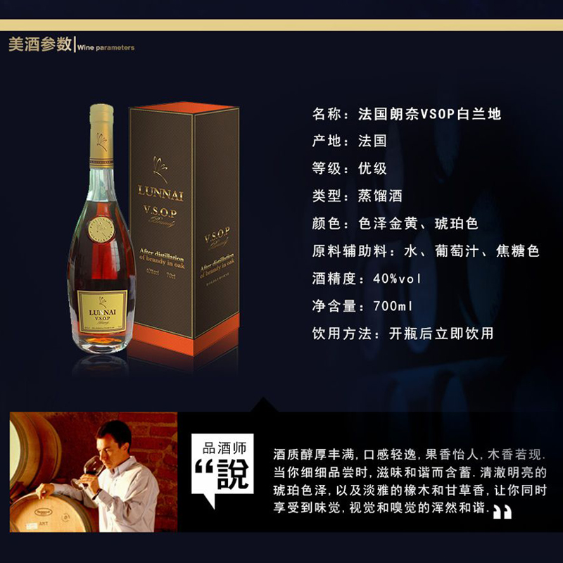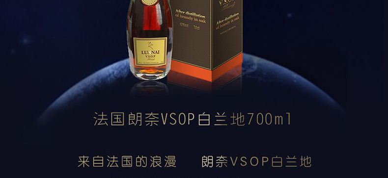包邮-原瓶进口朗奈VSOP白兰地700ml/瓶