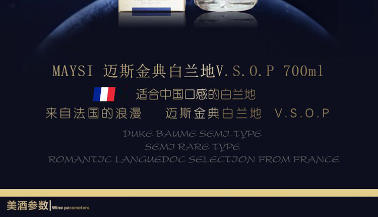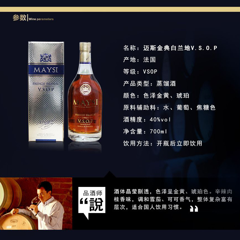 包邮-原瓶进口迈斯金典VSOP白兰地700ml/瓶