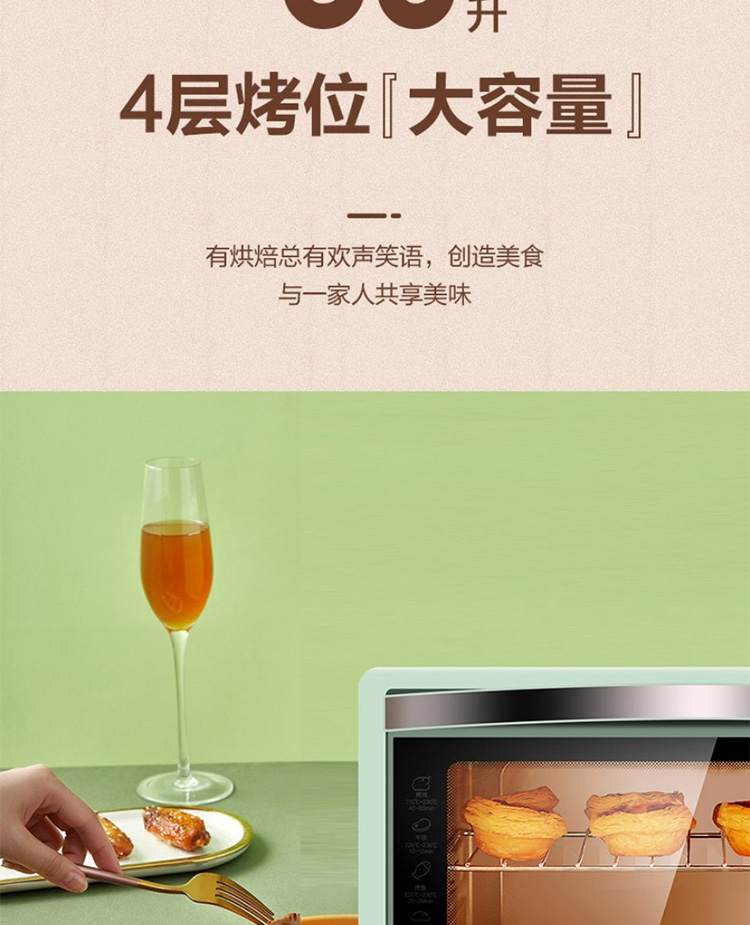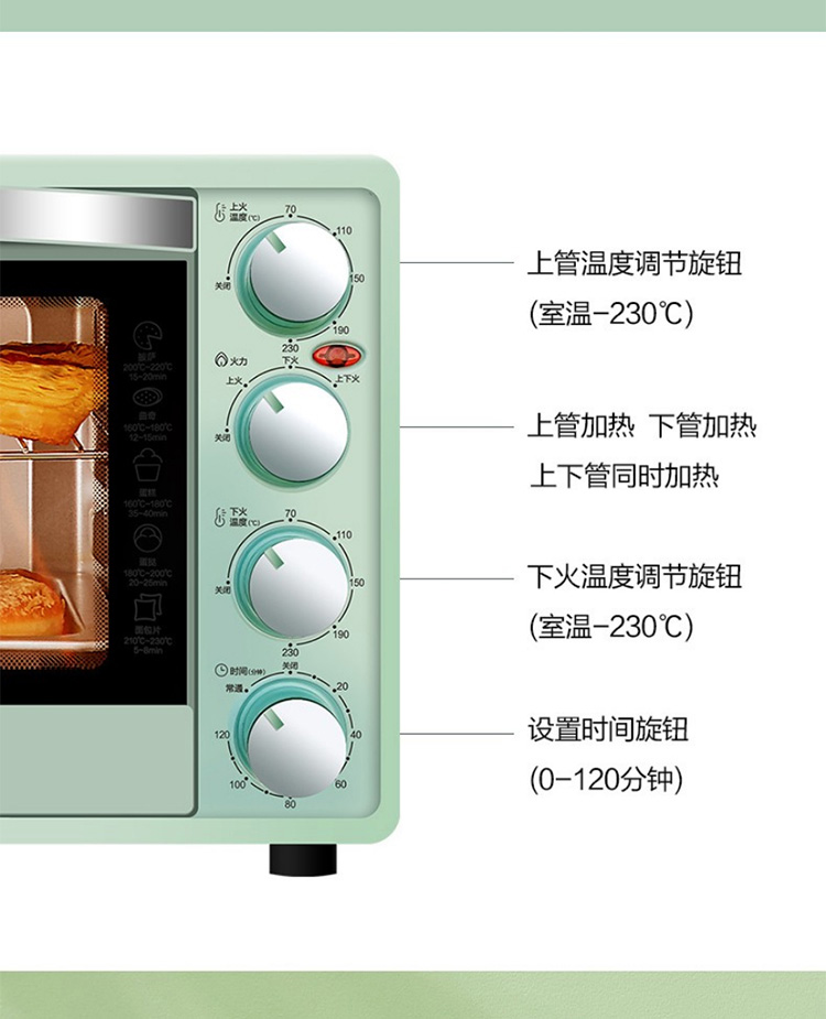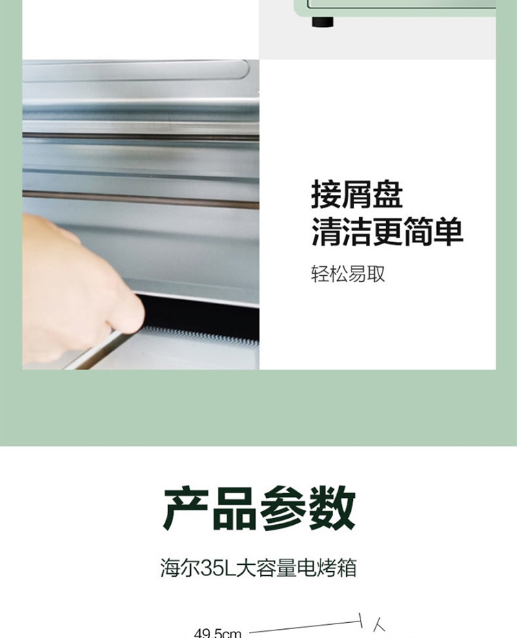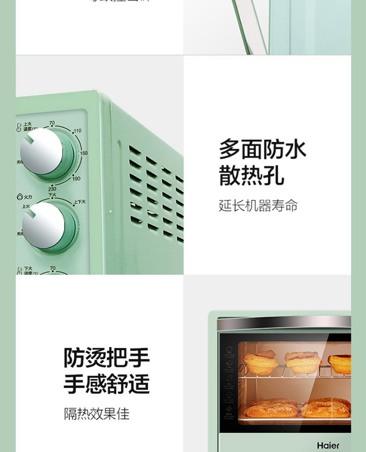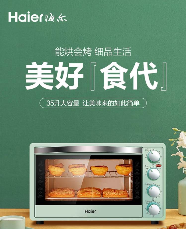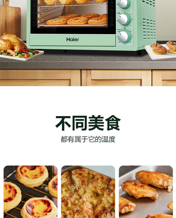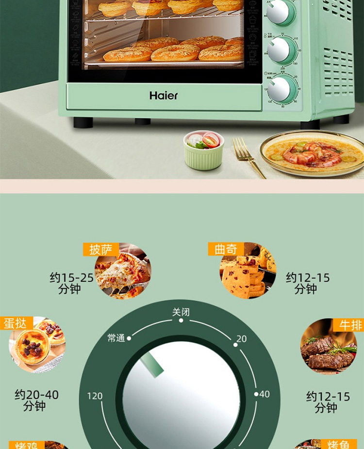 海尔/Haier 多功能家用35升大容量烘焙电烤箱上下独立控温电烤箱K-35M4E 草绿色
