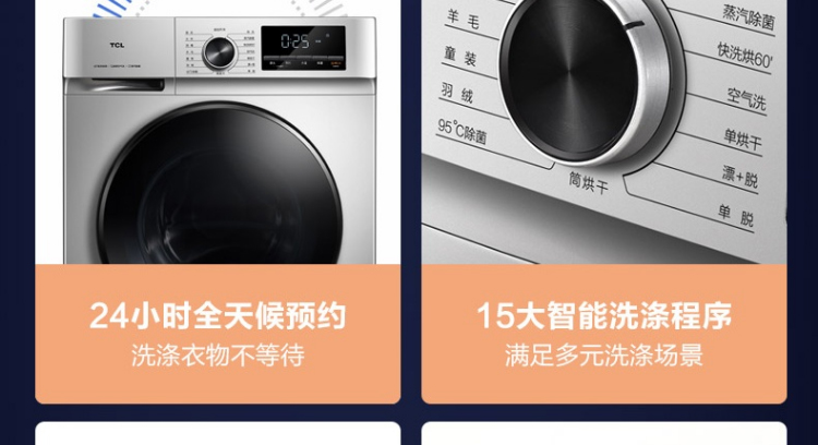 TCL 洗衣机 滚筒洗衣机 洗烘一体 10公斤家用大容量 XQG100-F1CHB 送货上楼 西藏不发货(灰色)