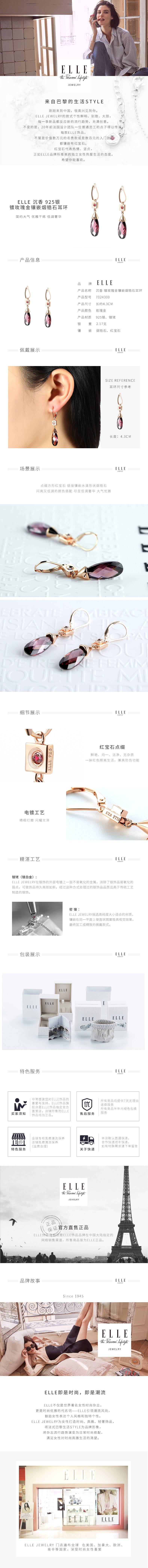 ELLE耳环修饰脸型S925银人工锆石红宝石镀玫瑰金耳坠 神秘高贵沉香系列来自法国7024300 玫瑰金