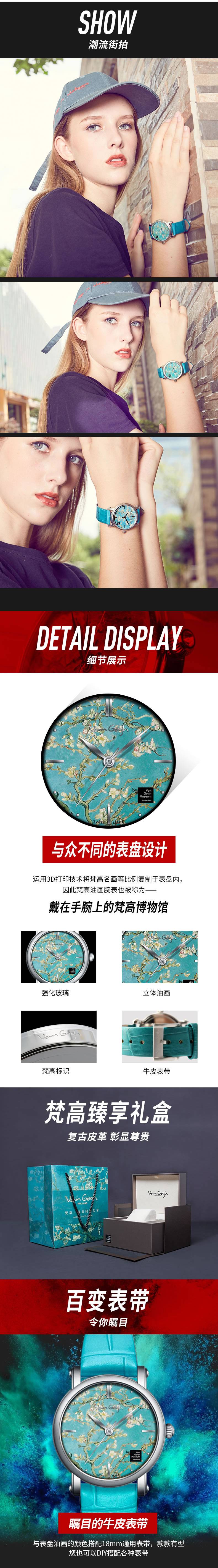 梵高(VanGogh)瑞士女士石英手表 3D打印油画表面牛皮表带个性网红潮牌博物馆正版原装进口女表 盛开的杏树Lady09