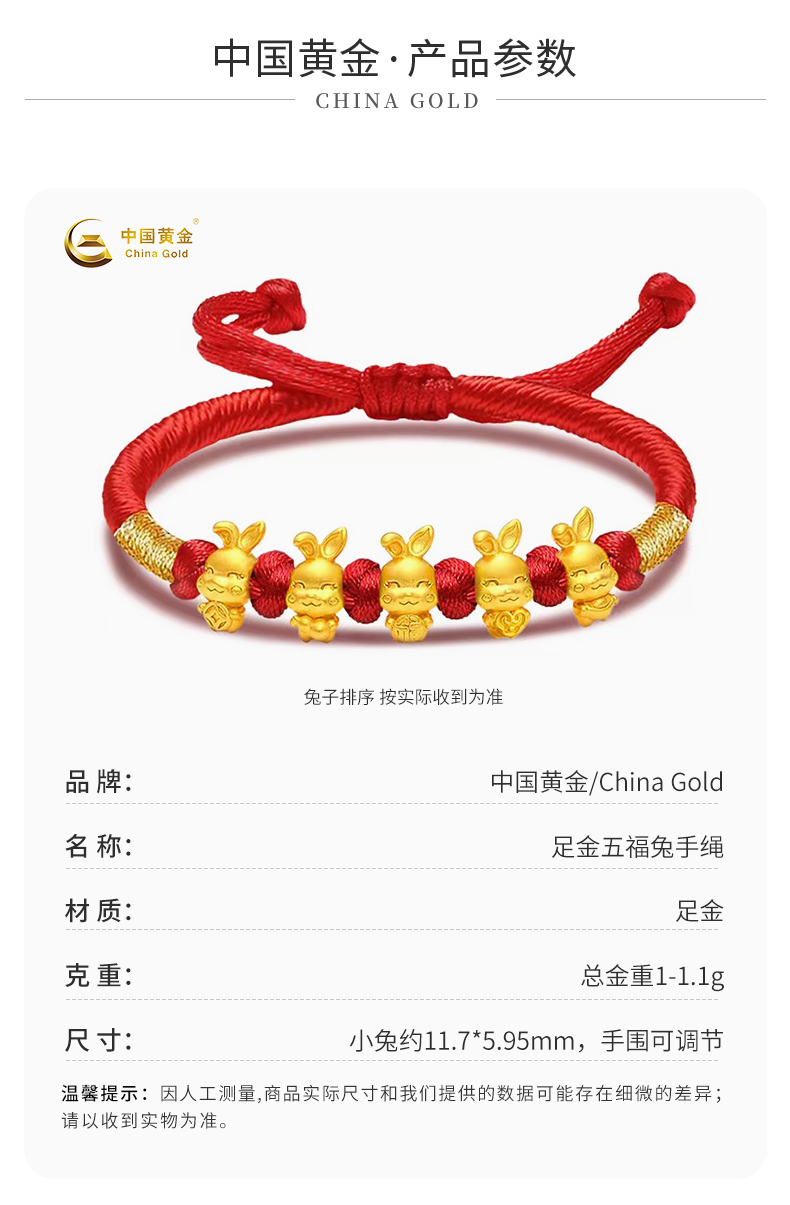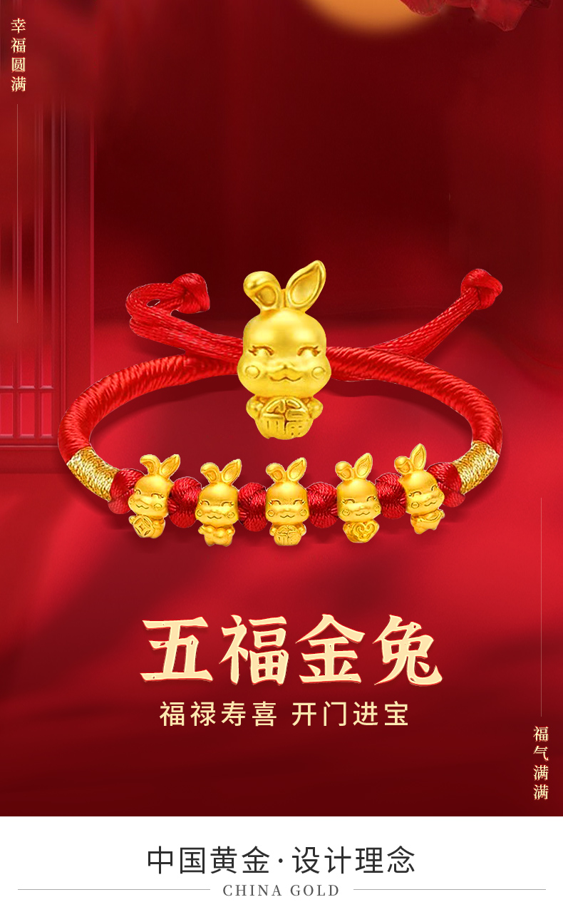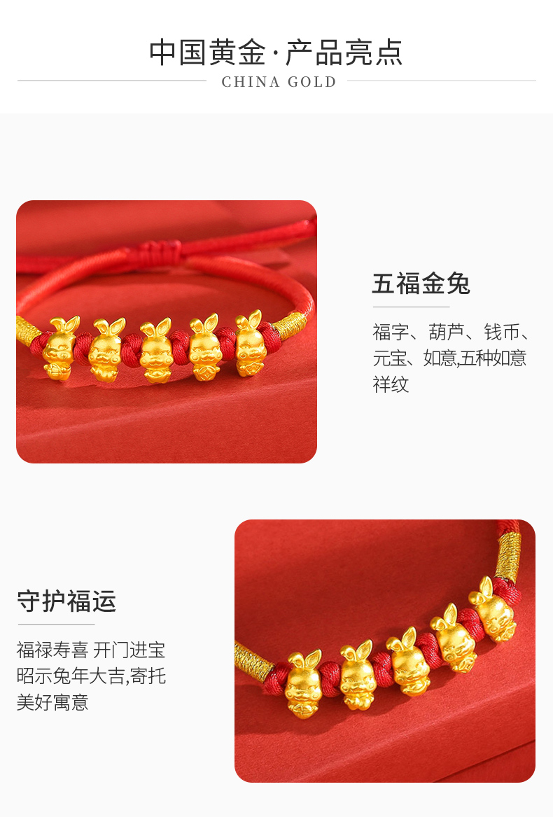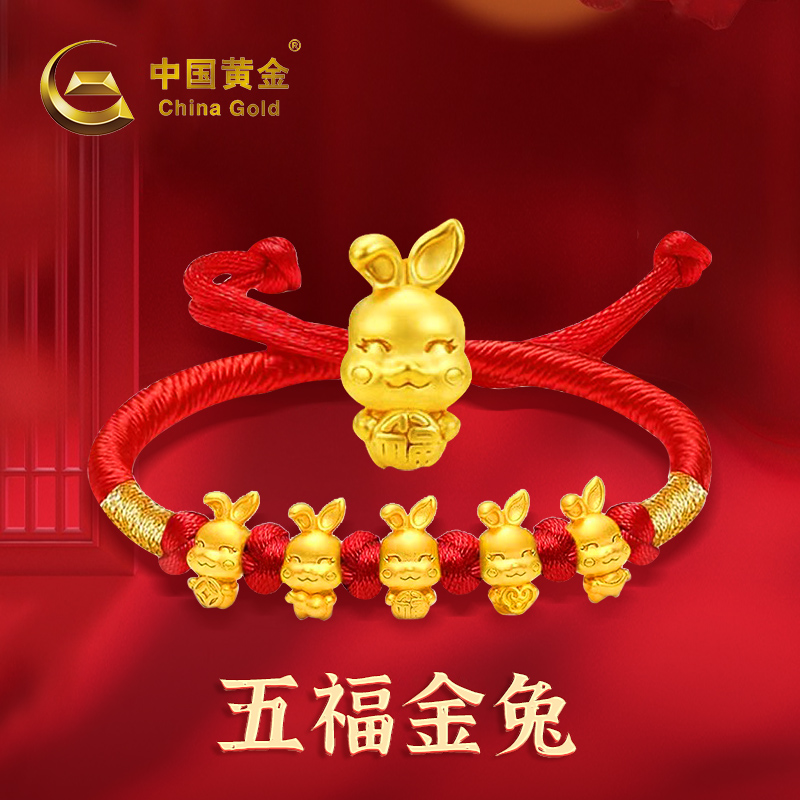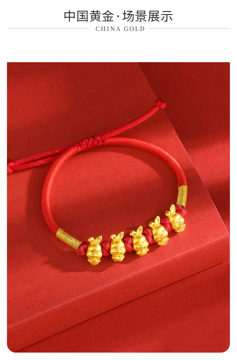包邮-中国黄金足金五福兔手绳ZGHJ221622 支持线下验货【新疆 西藏不发货】