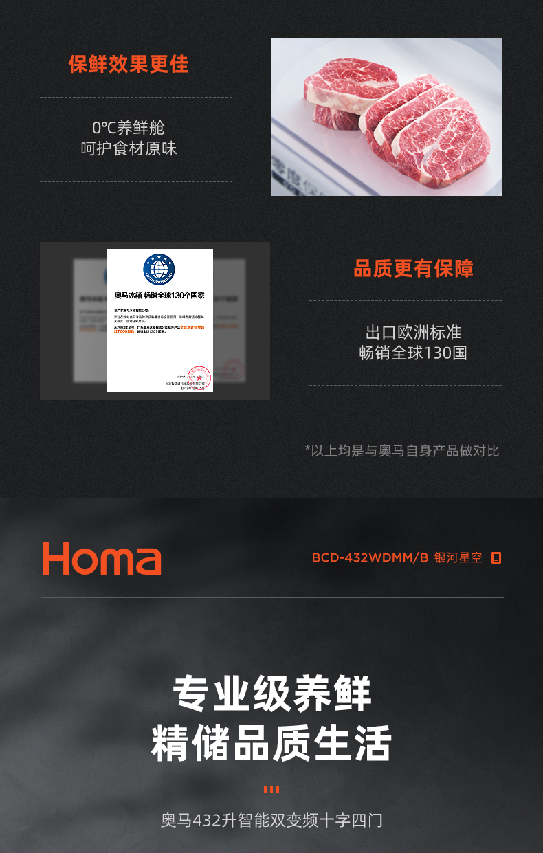 奥马(Homa) 432升十字对开门冰箱 一级能效双变频风冷 BCD-432WDMM/B银河星空