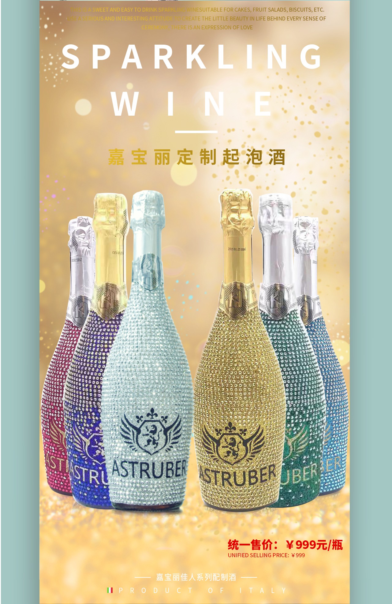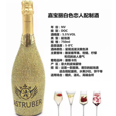 法国进口洋酒珍藏级阿斯杜博起泡酒750ml * 6瓶 (6个颜色各一瓶),桃红/甜白两种口味随机发(内蒙古不发货)