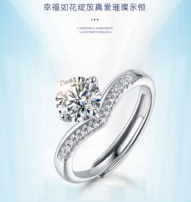 SHIGFUKU 香港周六福莫桑钻戒指6.5mm 1克拉-公主皇冠 新疆、西藏、青海不发货