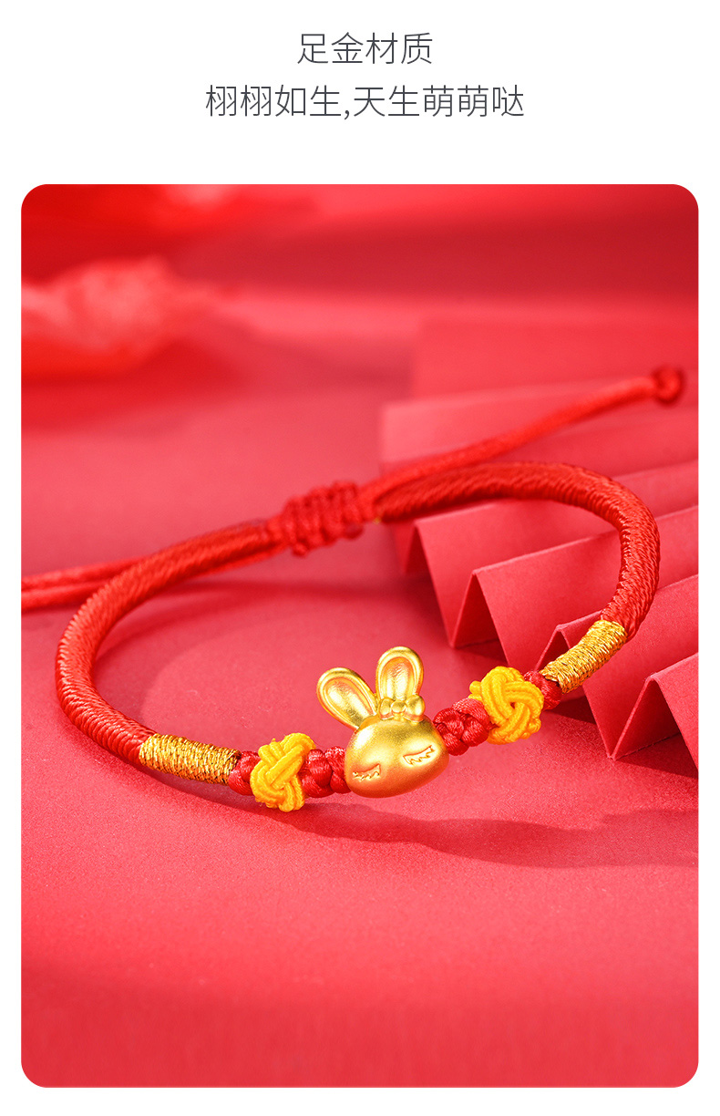 包邮-中国黄金足金兔兔编绳手绳ZGHJ221820 支持线下验货【新疆 西藏不发货】