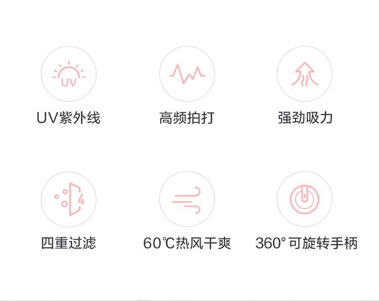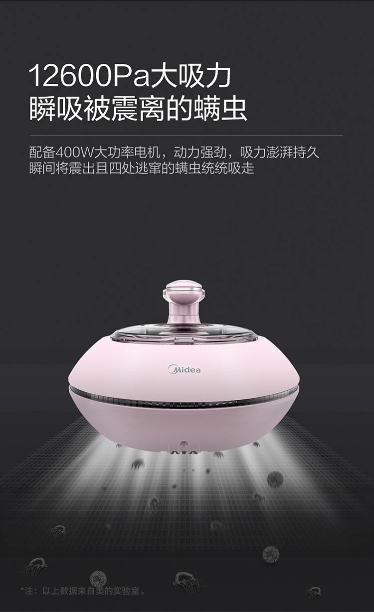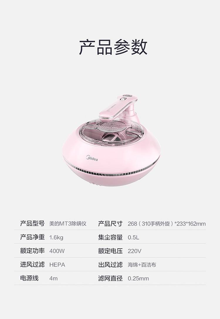 美的(Midea)除螨仪MT3 有线手持床上家用吸尘器 冰莹粉 紫外线杀菌除螨