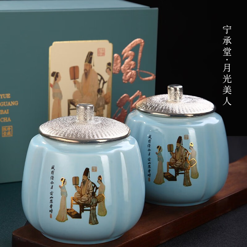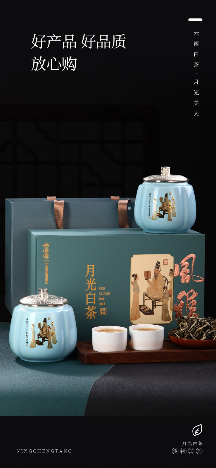 宁承堂月光白茶 云南白茶 清甜馥郁 双瓷罐礼盒装 160g装