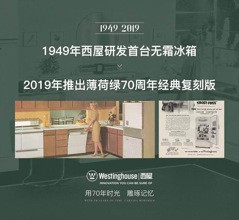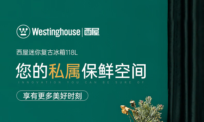 包邮-西屋(Westinghouse)美式复古冰箱118L 家用宿舍租房 母乳化妆品冰箱 BC-WD118G/M 薄荷绿 /奶酪白