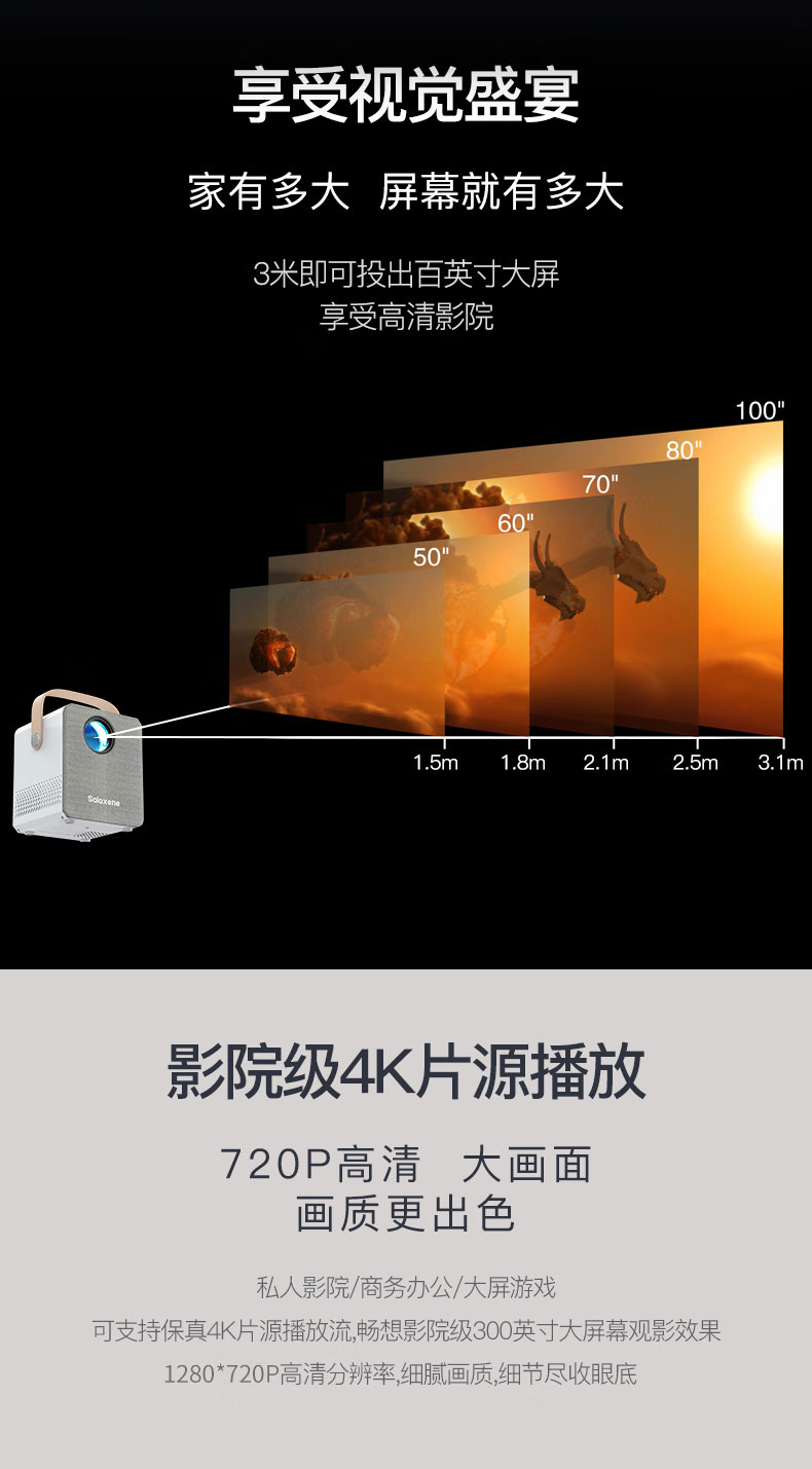 Salaxene圣伦西尼投影仪家用卧室高清投影机 A2