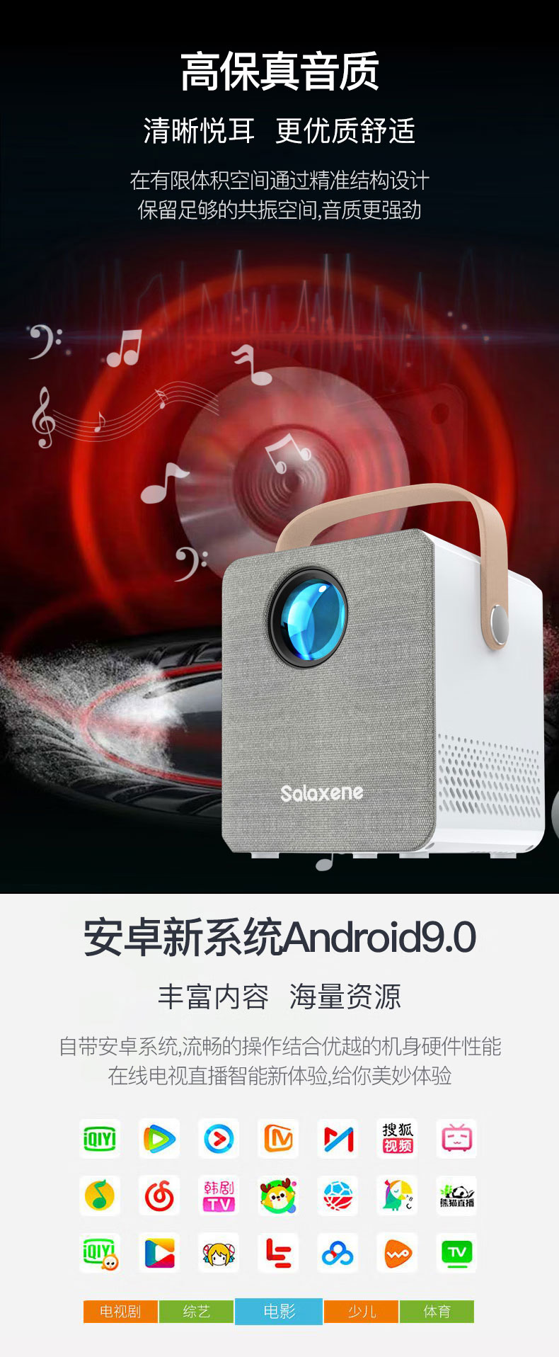 salaxene德国圣伦西尼 智能投影仪X1便携式小型迷你投影手机 智能家庭小影院