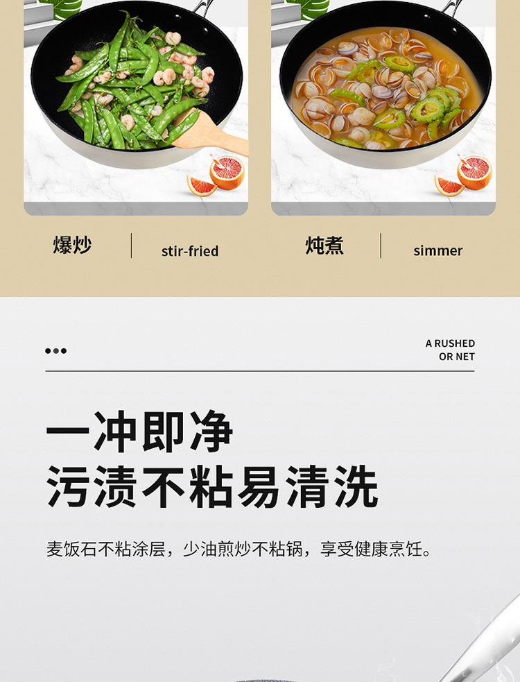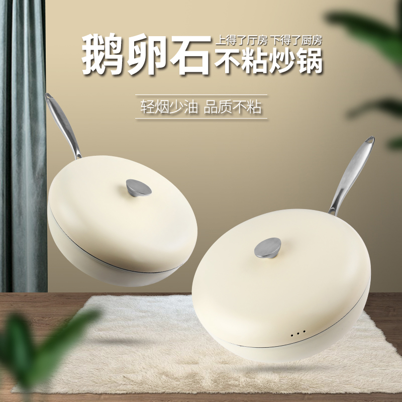 尚层网红款鹅卵石不粘锅炒锅32cm家用麦饭石炒菜锅电磁炉燃气灶专用SSCJ-F310